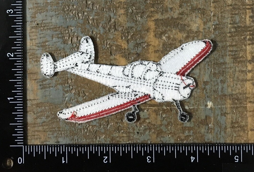 Vintage Aviation Airplane Embroidered Iron-On Patch in White and Red