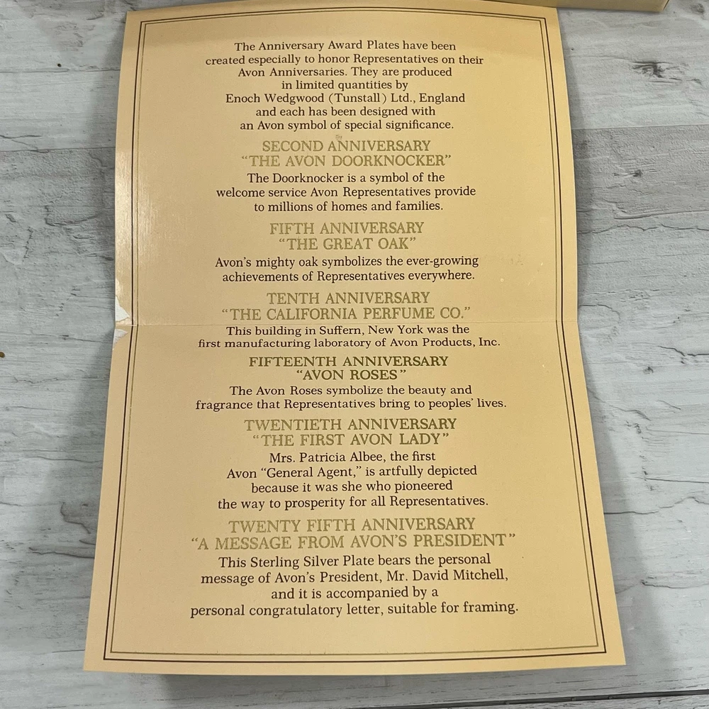 Vintage Avon 15th Anniversary Roses Enoch Wedgwood Sales Dealer Collector Plate Significant grazing which can be seen in pictures Hand wash Not for food 9" Plate Measurements are approximate Colors may differ based on others computer/phone/etc settings