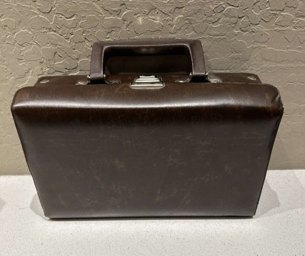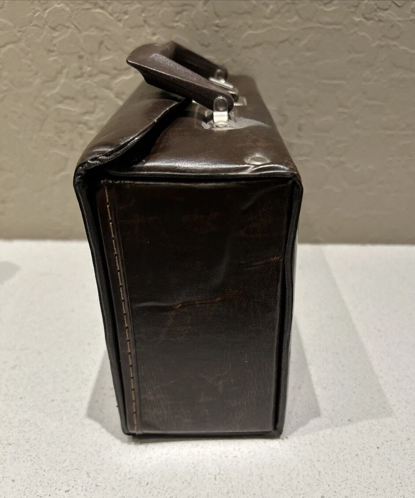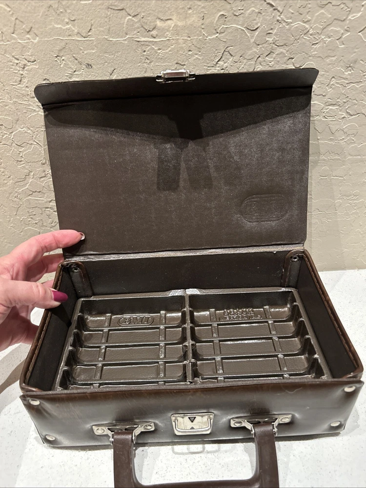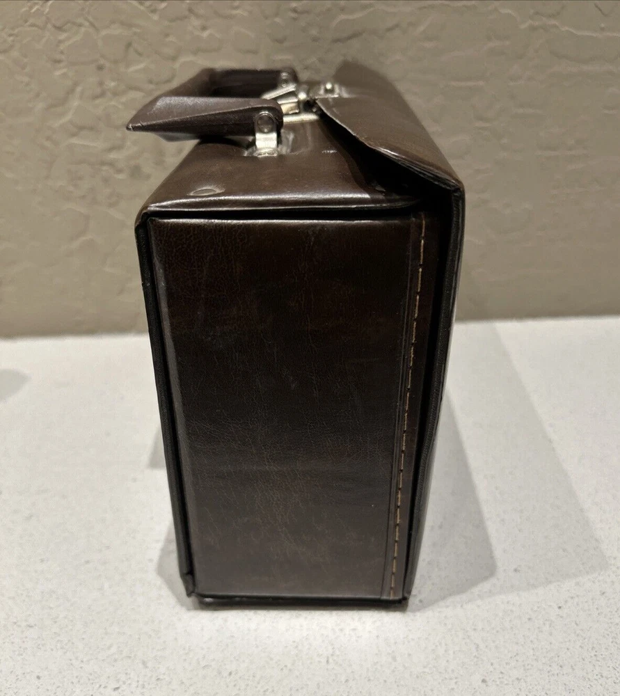 Vintage BMI 12 Cassette Tape Storage Case Holder Brown with Handle Great small vintage case. Please see pictures that plastic insert for tapes inside have a very small imperfection or tear due to age. Will not affect tapes storage. Thank you.