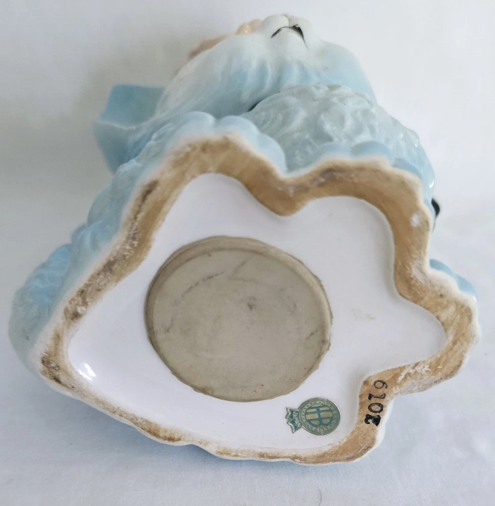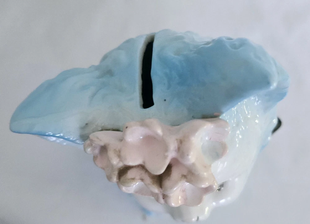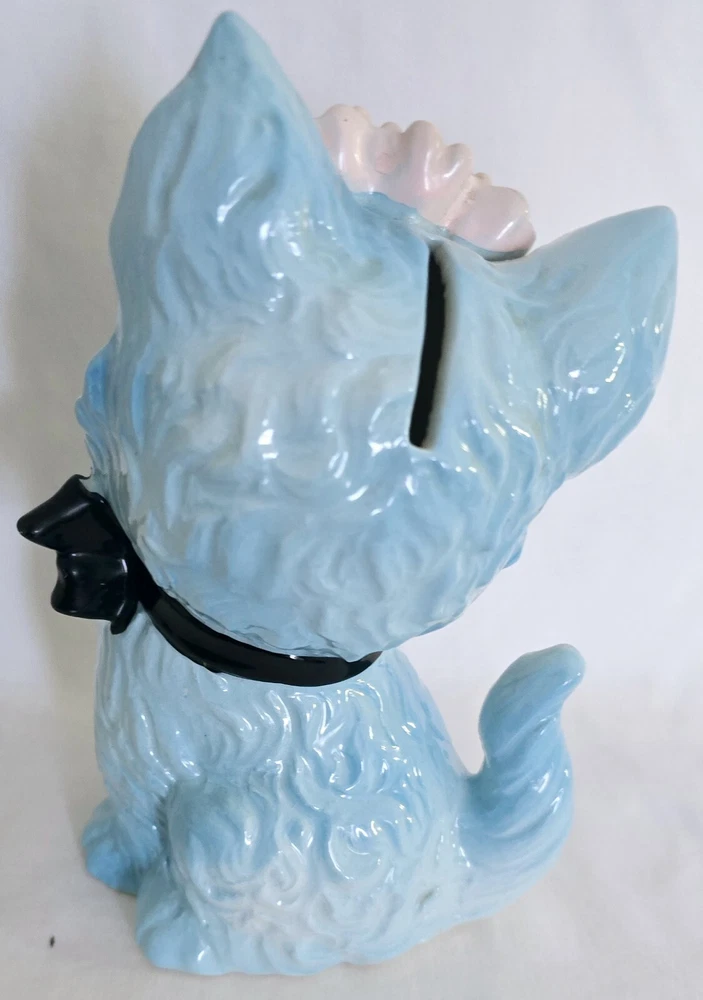 Vintage Baby Blue Kitten Cat Piggy Bank Figurine Rhinestone Eyes 7" x 4" x 3"....has a sticker H B Japan with 2019...does have 2 very small flea bites on her left ear..does have the original Stopper on the bottom..very cute! ..please see photos for details any questions please message me thanks no international shipping or global shipping program