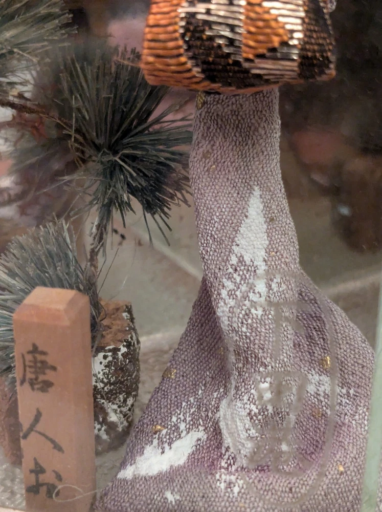 This is a unique and timeless treasure that features a beautiful handmade Japanese Geisha doll encased in a mirrored display case. The doll has straight black hair and black eyes, with a light complexion. She is a 3-inch doll inside the display case made of wood and mirrors. The mirrors has a detailed painting of the ocean with a sailing ship. It is a perfect addition to any collection, and it is ideal for display in any room. This doll is a perfect representation of Japanese culture and ethnicity, and it is a must-have for anyone who loves to collect dolls from different cultures.