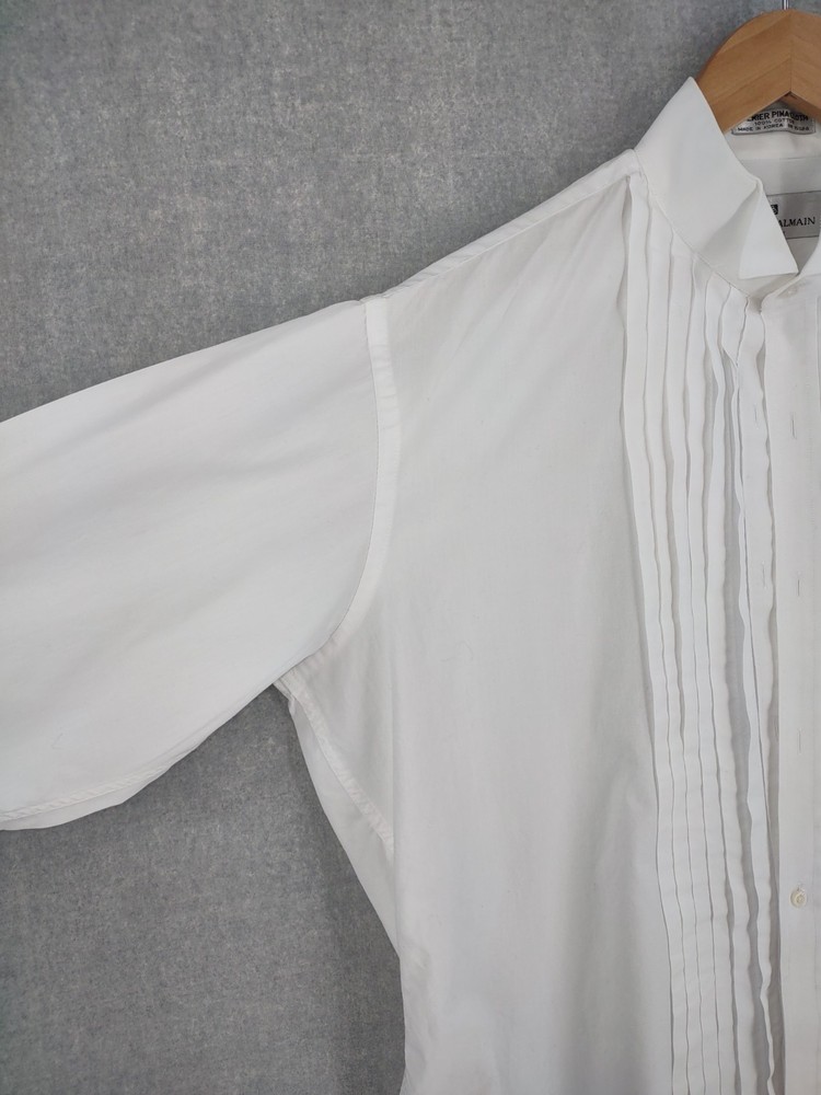 Welcome to Aspen Crossing, your destination for modern rustic western wear and refined leisure style reflecting the rugged beauty of our American West Vintage Balmain Shirt Men 16.5/33 White Plisse Tuxedo Long Sleeve Stud Button Up French Cuffs Timeless Elegant Sophisticated It is always best to compare the measurements above with a top that fits you comfortably. CONDITION - Excellent pre-owned condition with no rips or tears. Would benefit from professional pressing. All items are cleaned per EBAY standards. Not spot treated. See the photo gallery to view this items measurements and condition. SHIPPED - USPS First Class Mail unless item weight requires priority mail. RETURNS accepted, must be returned within 30 days in original condition to receive a full refund. SHIPPING AND HANDLING We ship all packages within five business days Monday through Friday except Holidays. Consolidated shipping is available for multiple purchases. Thank you for helping our planet and buying previously owned and loved items. I am grateful for your business. Enjoy! Check out our eBay store and follow us. There are new listings daily. CUSTOM SKU: Disclaimer: While we make every effort to capture the most accurate depiction of every item when photographing, colors may vary from screen display to in person therefore we cannot guarantee exact shade on any item. Message us if you have questions.