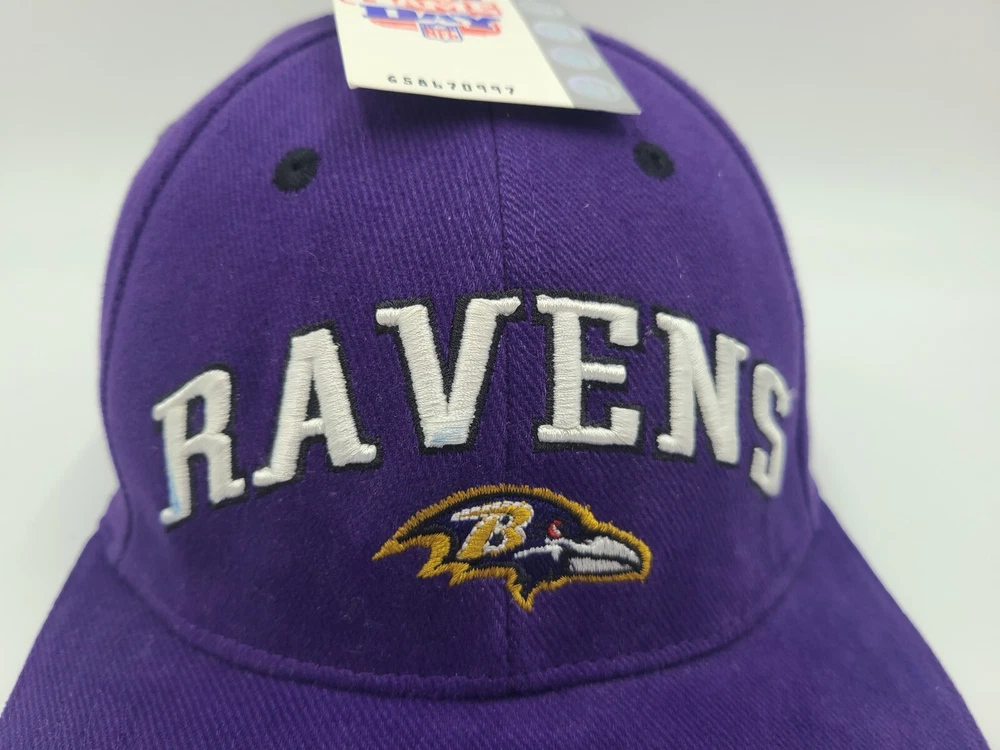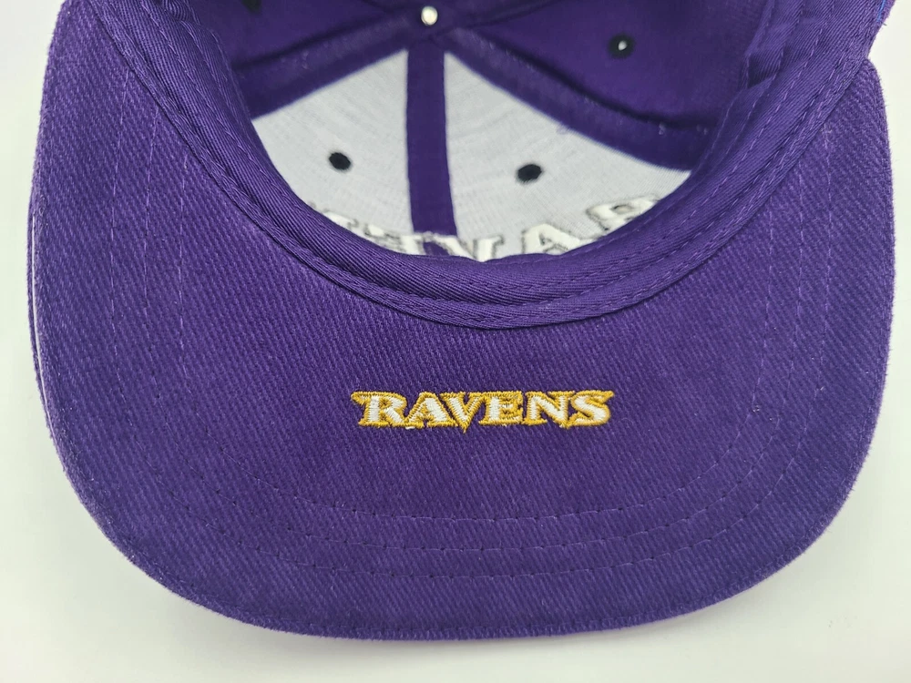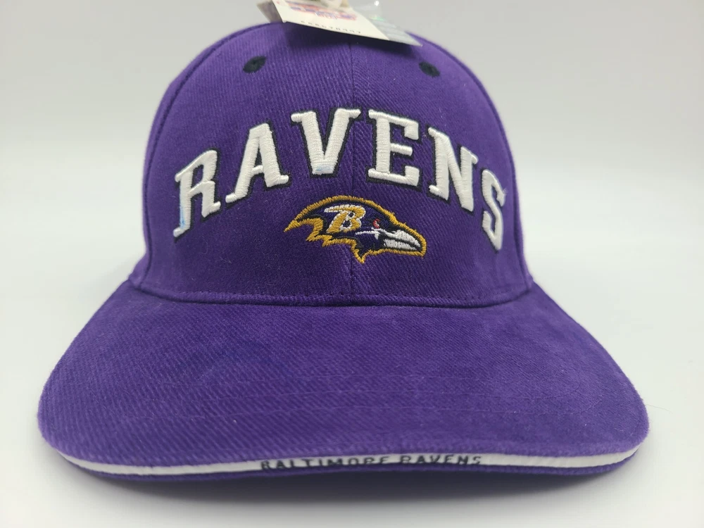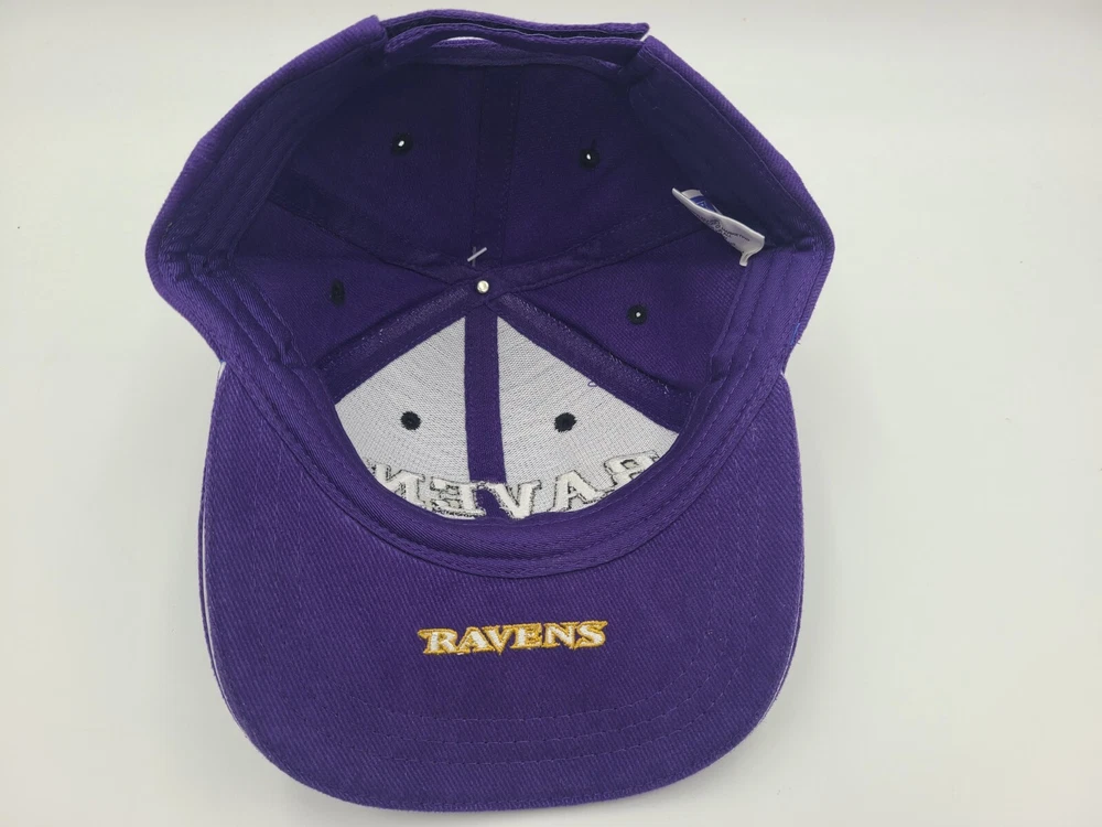 Has some stains on the brim and discoloration along the sides as seen in photos. Vintage Baltimore Ravens Drew Pearson Marketing NFL Gameday Adjustable Hat Cap. EACH ADDITIONAL HAT PURCHASED IS ONLY $1 ADDED SHIPPING!