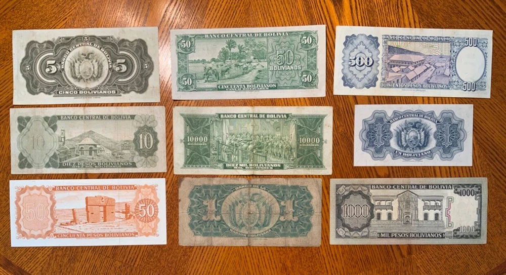Vintage Banknote lot from Bolivia.