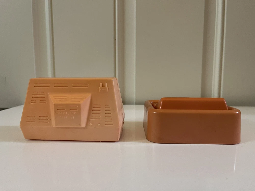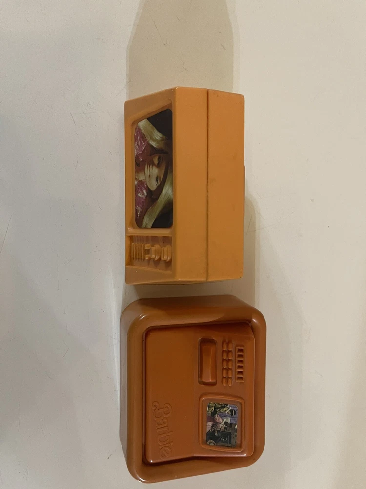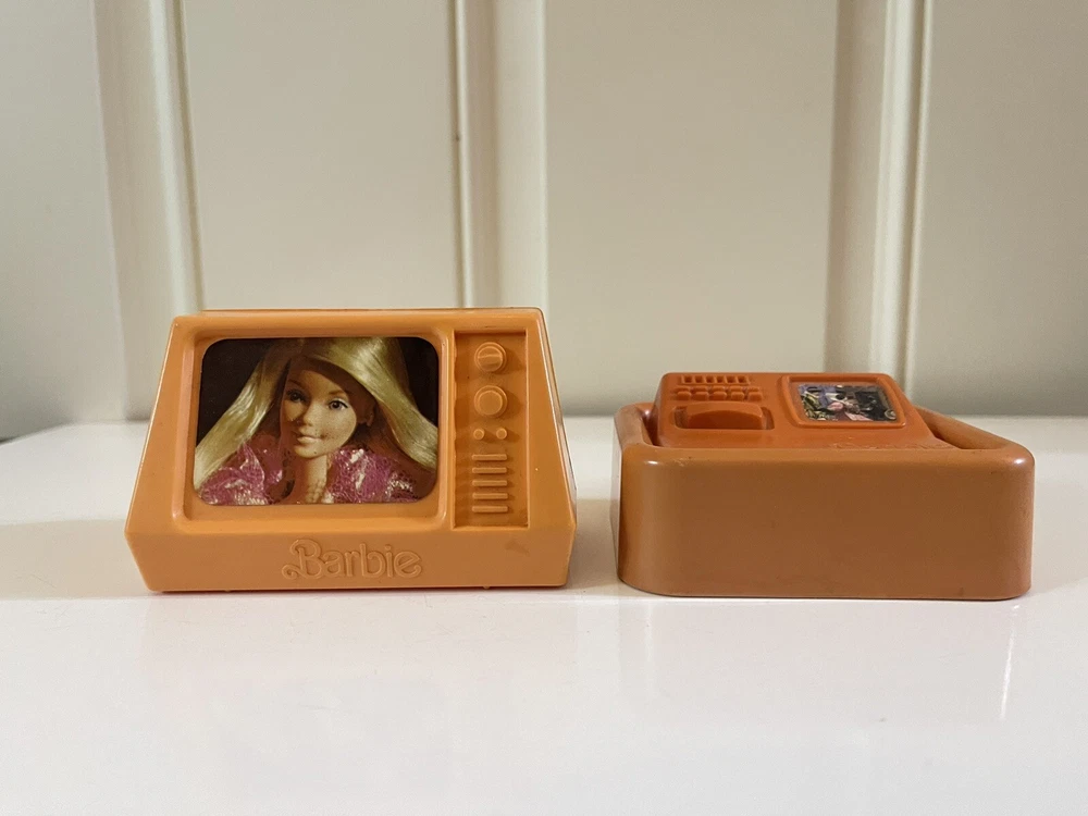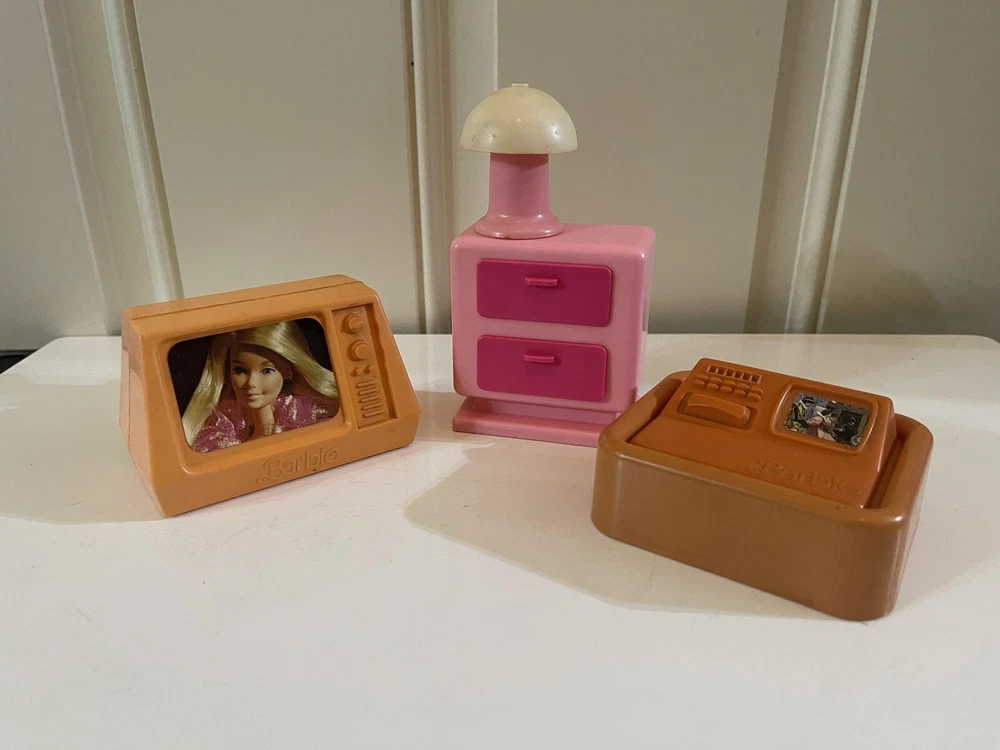 Vintage Barbie 1977 Mattel Dream House Accessories TV Lamp Computer Drawers Item is preowned, used, and played with. Item shows discoloration and marks. Please SEE PHOTOS in detail for item condition.