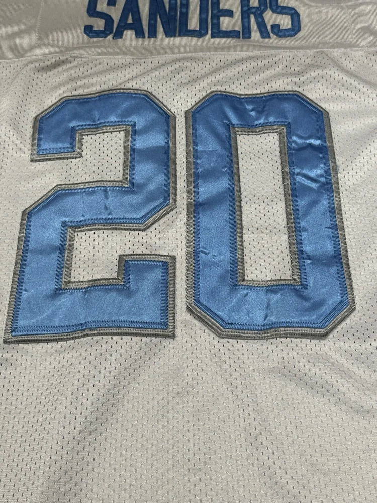 Show your love for the Detroit Lions and one of their greatest players of all time, Barry Sanders, with this vintage Mitchell & Ness throwback jersey. Featuring the iconic number 25 and the team's colors of white and blue, this jersey is perfect for any fan of the National Football League during the regular season. It's officially licensed and made for men, with a one size fits all design. Perfect for game day or displaying in your collection, this jersey is a must-have for any true football fan.