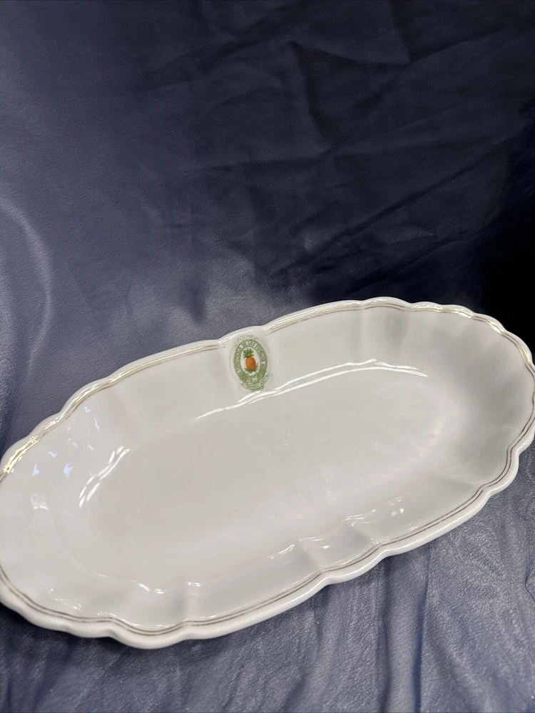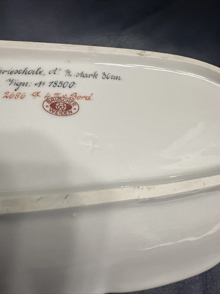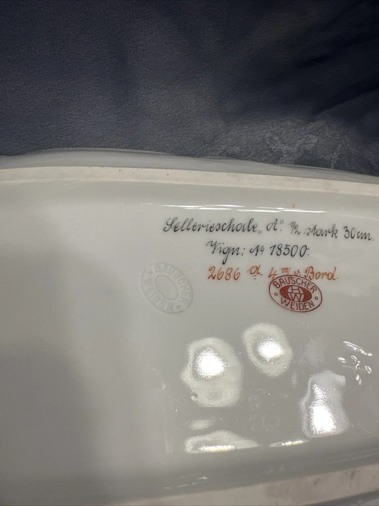 Add a touch of vintage charm to your table with this beautiful Bauscher Weiden German oval relish tray. Made in Bavaria, Germany between 1920-1929, this stoneware tray features a classic white color and a delicate vintage pattern that is sure to impress your guests. The tray is perfect for serving condiments, sauces, and other small dishes, and its unique oval shape makes it a great addition to any dinnerware collection. Crafted using traditional pottery techniques, this tray is a true example of fine German porcelain. Its brand, Bauscher, is known for its high-quality and durable products, making it a great investment for any home. Don't miss your chance to own this beautiful vintage plate, perfect for collectors and those who appreciate fine craftsmanship. Confiteria de las familias Domingo Acal