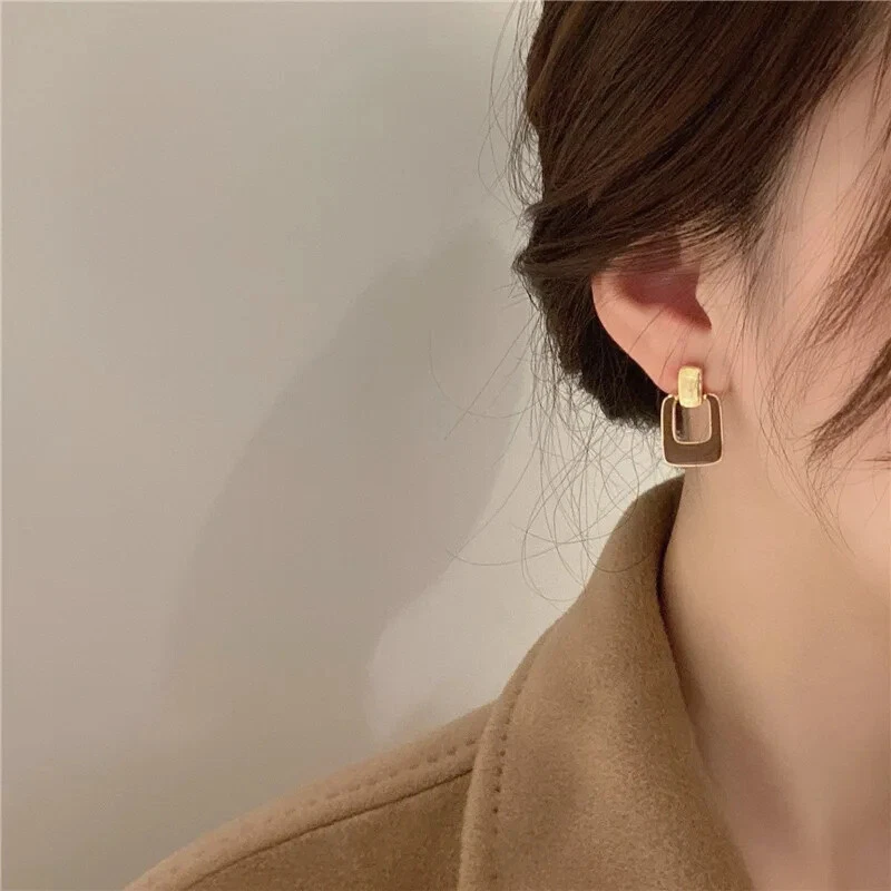 European and American Style Fashion two-Color Metal Square Earrings Suitable for