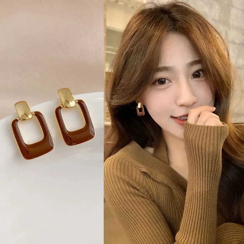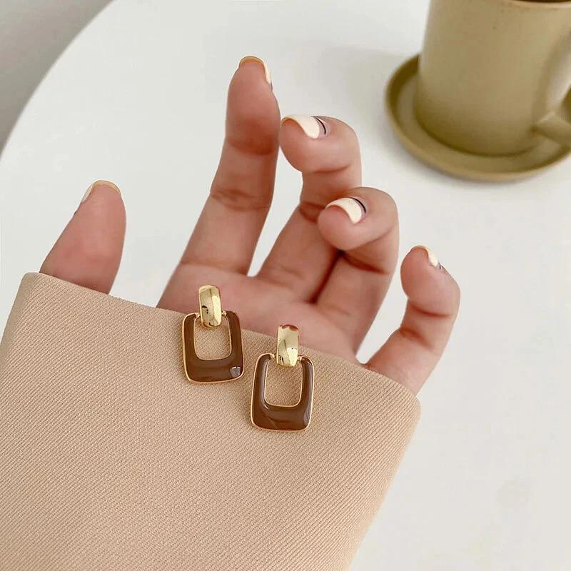 Vintage Big Brown Hollow Out Square Drop Earrings for Women Wedding Party Classi