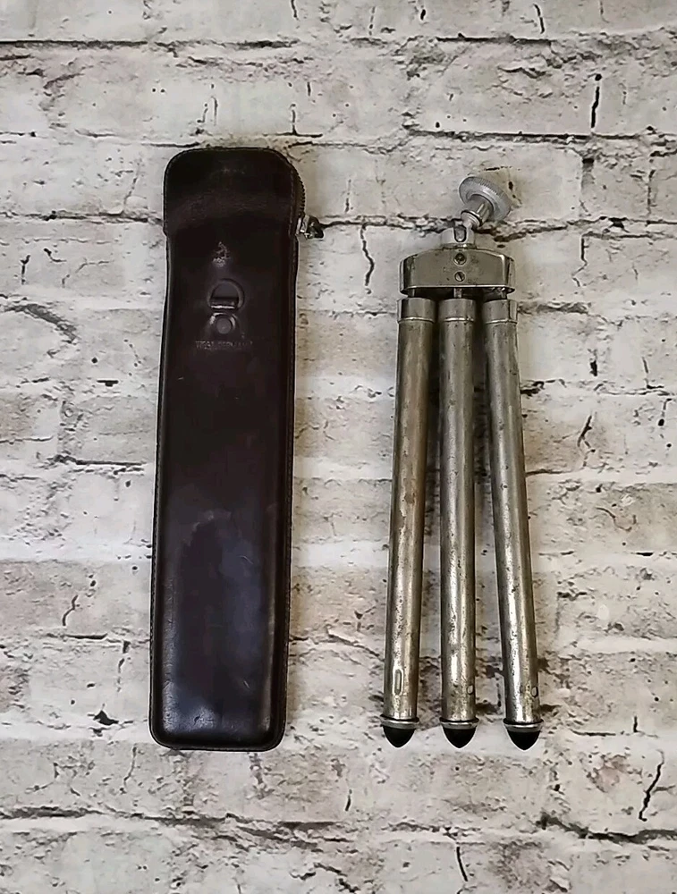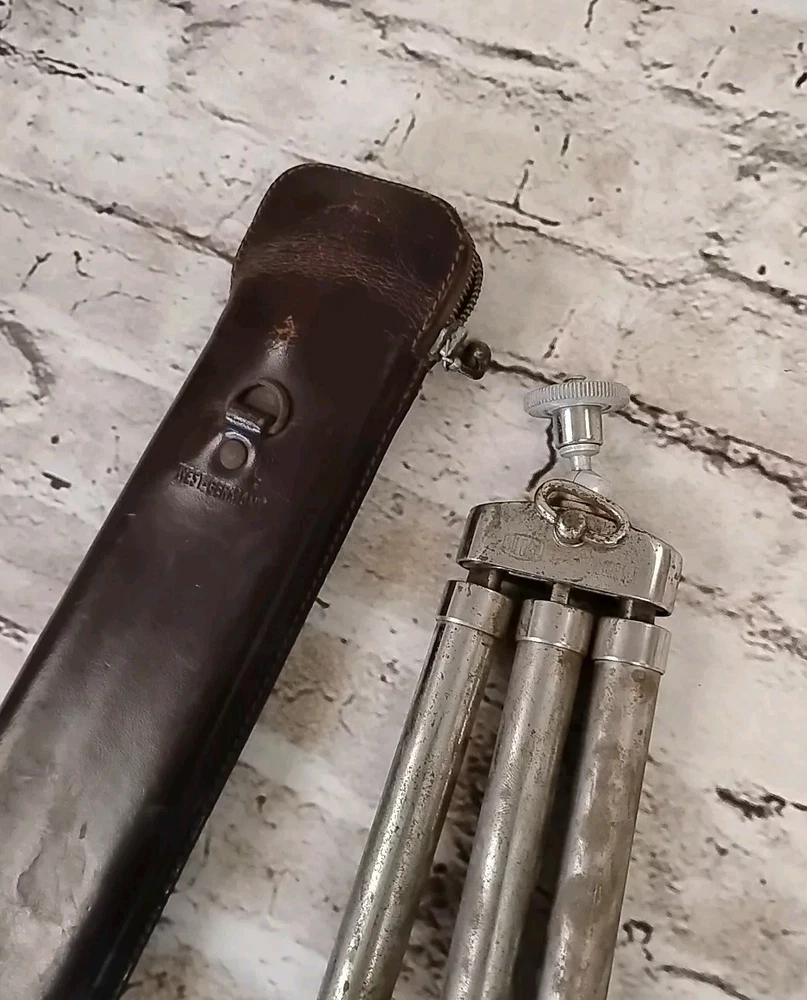 This vintage Bilora tripod is a must-have for any photographer looking for a sturdy and reliable support for their camera. Made in Germany, this tripod features a telescoping design that allows for easy adjustment of the height and angle of the camera. The pan/tilt head ensures that the camera is always steady and the aluminum material adds a touch of durability to the tripod. The tripod is designed to fit most cameras and is perfect for both indoor and outdoor photography. Its unique design and quality construction make it a great addition to any photographer's gear.