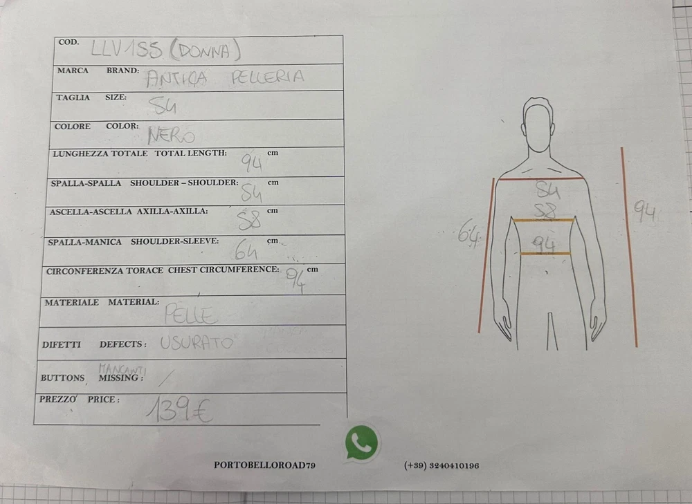 Closure:ZipperSize Type:RegularType:JacketBrand:Antica PelleriaOuter Shell Material:LeatherDepartment:womangtin13:Does not applyUPC:Does not applyColor:BlackSize:54Vintage:YesStyle:Jacket