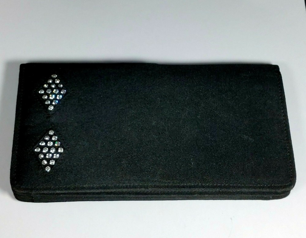Vintage Black Rhinestone Studded Evening Clutch Wallet Billfold Made in England Excellent condition (pictures do not do this piece justice) Quality matte black material, though I do not know the material name. Beautiful rhinestones in a diamond shape pattern. Snap closure. Opens up to two card slot pockets and one interior pocket. No zips. Size: 7-1/2 x 4" Ships FAST from Canada with Tracking Thanks for shopping our store We take extra care in packaging to ensure safe arrival of your item. All parcels are shipped with tracking so that you can monitor the shipment progress and delivery. Please Follow Our Store for Updated Weekly Items . Have a Great Day! Happy Holidays!USA buyers save with currency exchange on purchase.We ship UPS, Canada Post and Fedex as postage requires. Thank you for being a valued customer!