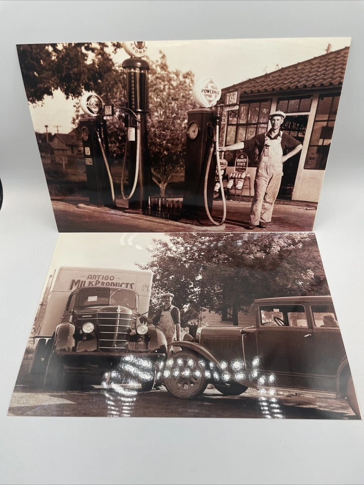 Vintage Black & White Gas Station Auto Film Photograph 12 X 8 In