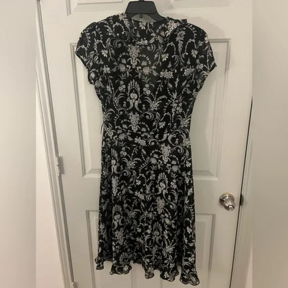 This dress is absolutely stunning—the sheer black and white design gives it such a classic, elegant vibe. The fit is perfect for a size 12, flattering without being too tight, and the vintage look makes it feel unique. Super comfortable yet stylish, it’s perfect for a night out or a special occasion. Love it!