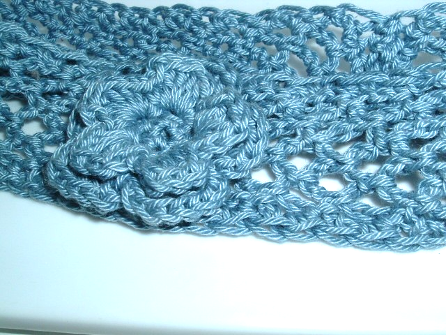 Perfect for a sun hat, beach hat or just something beautiful to keep your hair out of your eyes, a vintage hand crocheted sky blue stretch hat band with a rose to wear in front or on the side. Condition is excellent. May also be worn as a headband.