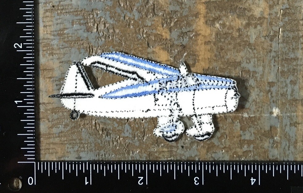 Vintage Blue & White Airplane Embroidered Iron-On Aviation Patch