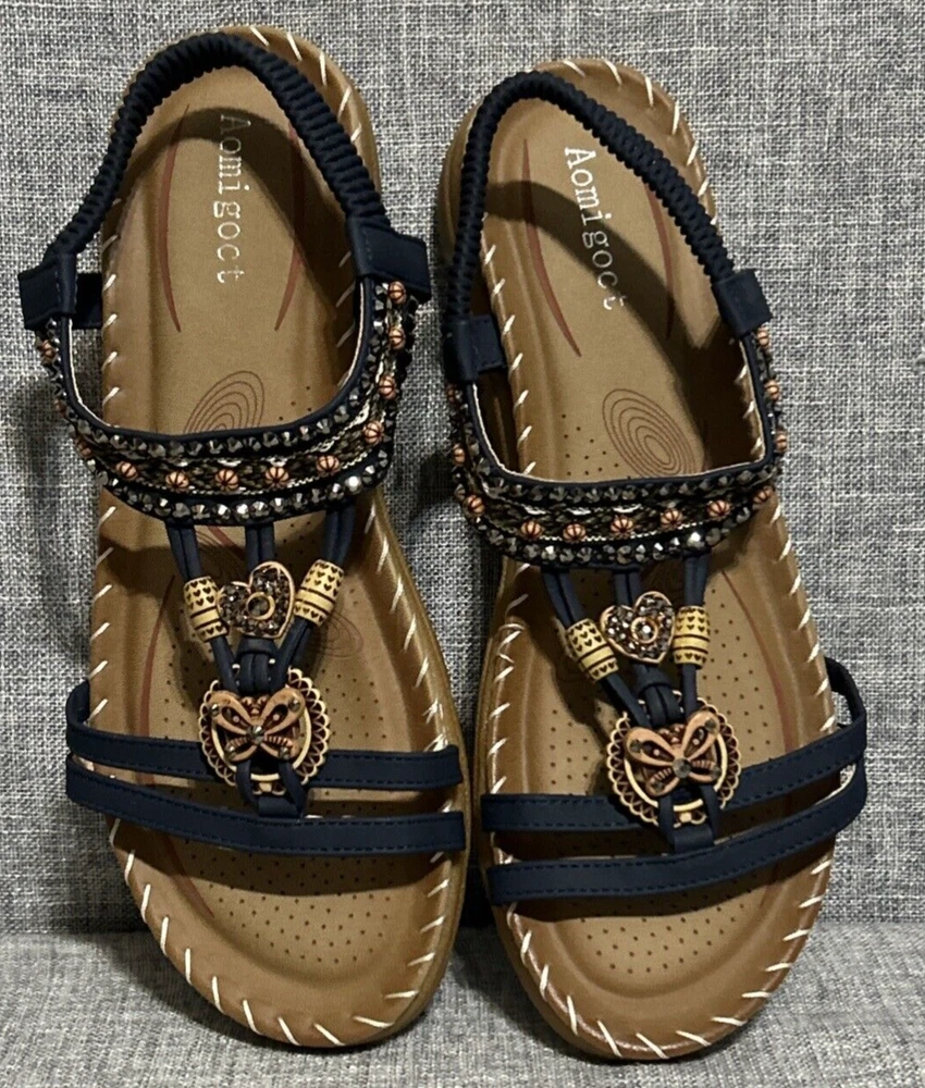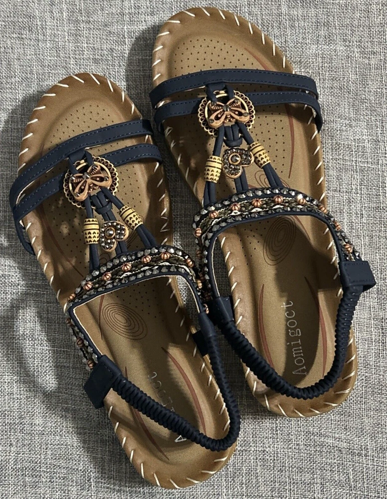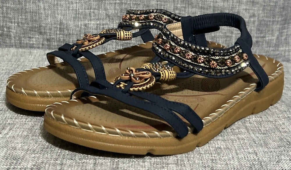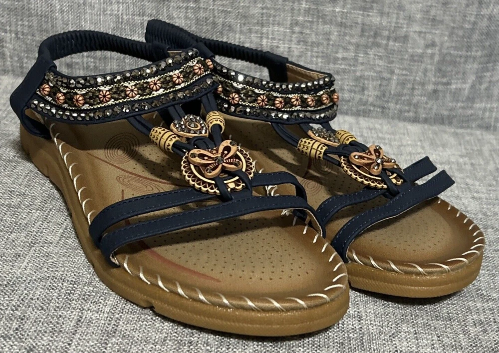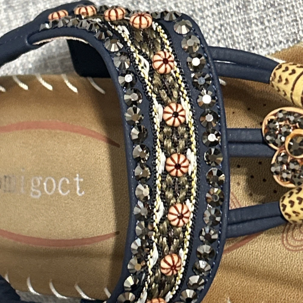 Vintage Bohemian Style Womens Beaded Size 8.5 Non-Slip Breathable Sandals Sequin