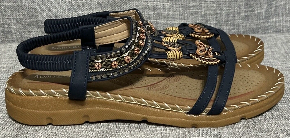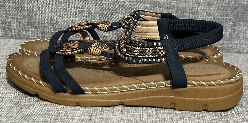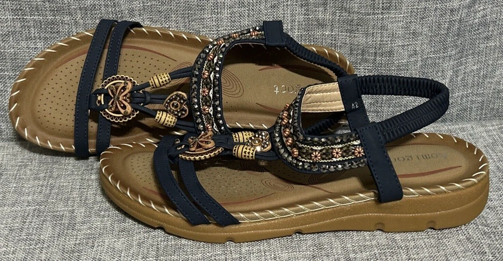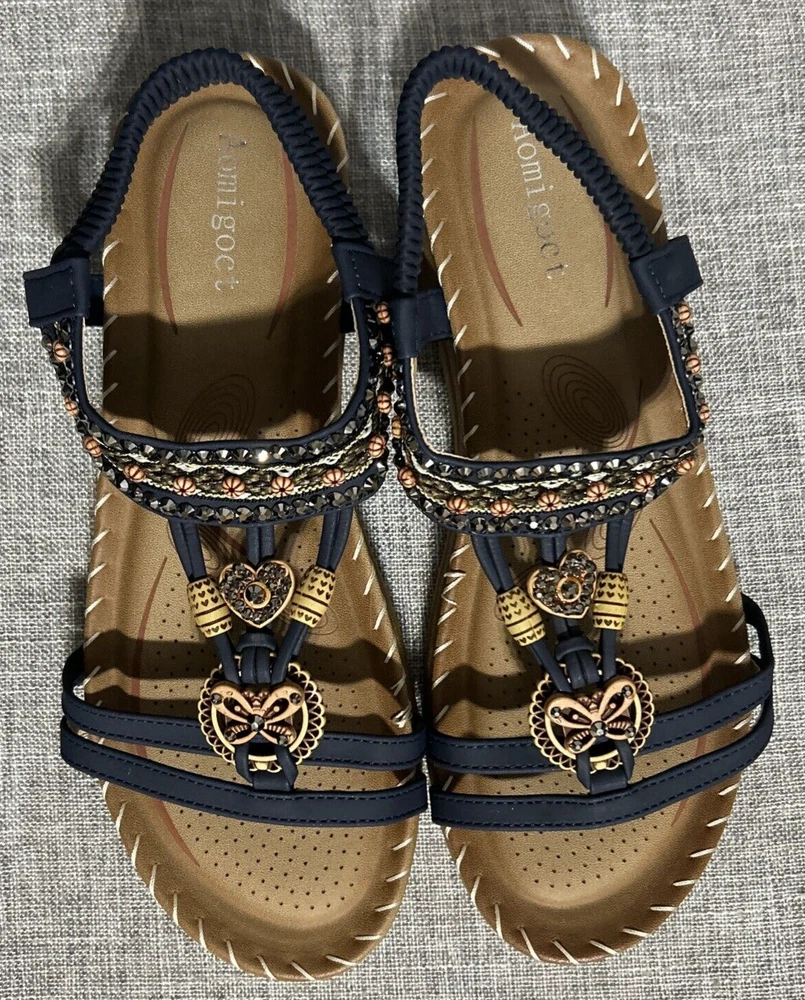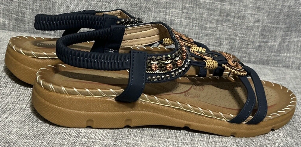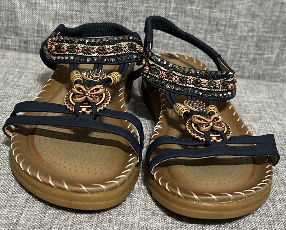 Vintage Bohemian Style Womens Beaded Size 8.5 Non-Slip Breathable Sandals Sequin