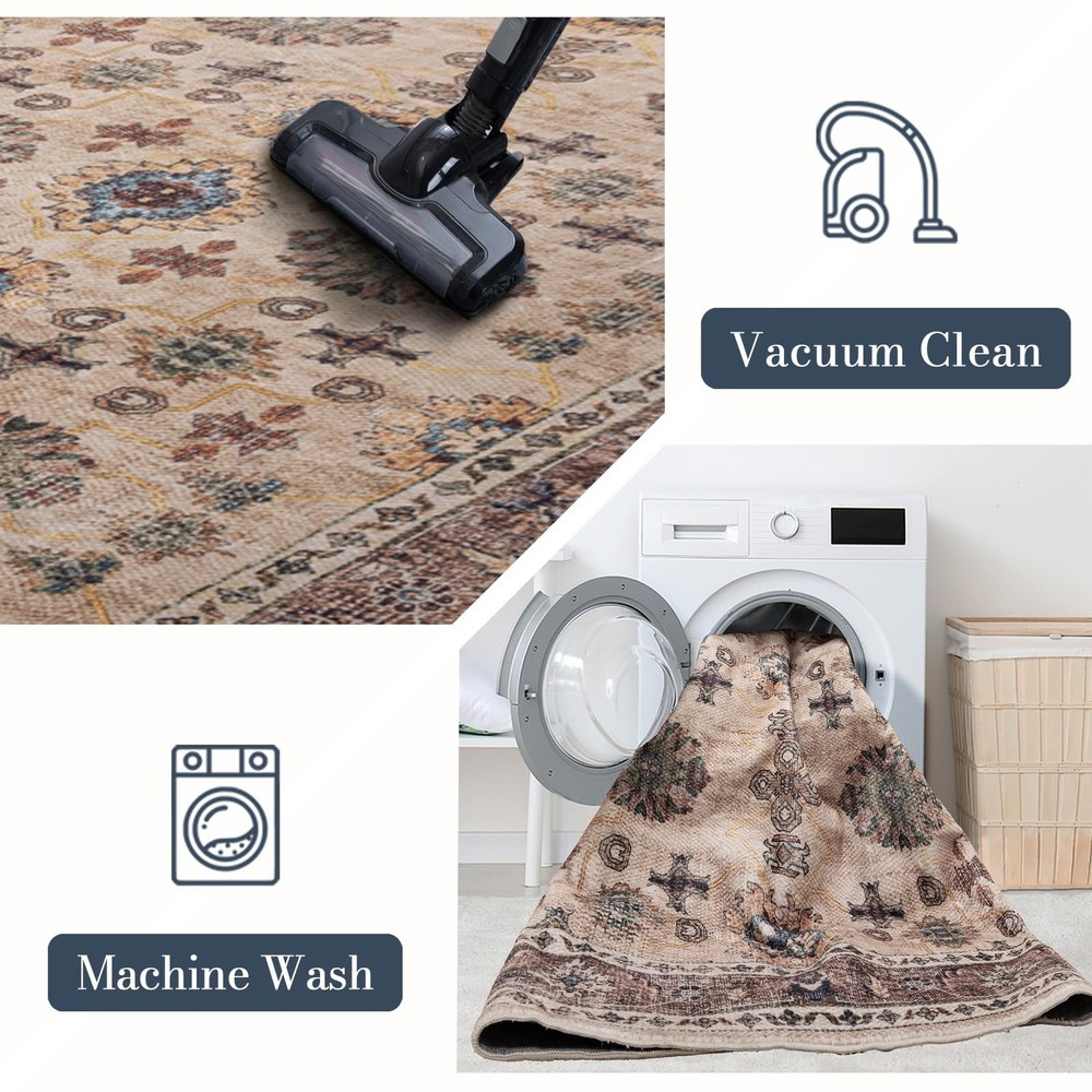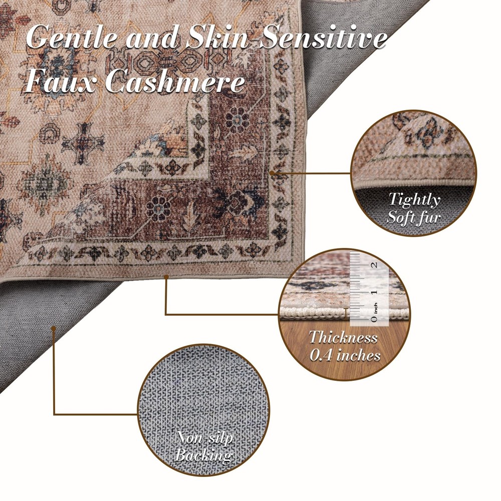 Area Rug 5×7, Large Vintage Boho Rug,Ultra-Soft Low Pile, Washable, Non Slip,Stain Resistant, Carpet for Living Room Bedrooms Playroom Office Kitchen,Brow/Moss Product Details Color: Brow/Moss Size: 5×7 Brand: Domitapis MPN: Domitapis rug UPC: Does not apply EAN: Does not apply Brand: Domitapis Size: 5×7 Material: Polyester Weave Type: Braided Item Weight: 10.07 Pounds Brand: Domitapis Size: 5×7 Material: Polyester Weave Type: Braided Item Weight: 10.07 Pounds Pile Height: Low Pile Construction Type: Machine Made Back Material Type: Thermoplastic Rubber (TPR) Color: Brow/Moss Indoor/Outdoor Usage: Indoor Is Stain Resistant: Yes Pattern: Floral Shape: Rectangular Product Dimensions: 84"L x 60"W Rug Form Type: Area Rug Water Resistance Level: Not Water Resistant Is Autographed: No Model Name: imitation cashmere rug Age Range (Description): Adult Item Weight: 10.07 pounds Manufacturer: Domitapis Item model number: Domitapis rug Date First Available: April 23, 2024 Soft and Elegance The rug offers a luxurious and soft texture, adding warmth and comfort to your living space. Its Bohemian-inspired design adds a touch of artistic flair and coziness to any room. Machine Washable This feature simplifies maintenance, allowing for easy cleaning by tossing the rug into a washing machine. It's a convenient option for those who want to keep their rugs fresh and vibrant without the hassle of hand cleaning or professional services. Non-slip Backing The rug comes with a TPE non-slip backing, ensuring it stays securely in place on various floor surfaces. This feature enhances safety and stability, making it suitable for high-traffic areas and homes with children and pets. Child and pet-friendly The rug is not only soft but also durable, designed to withstand the wear and tear of everyday life. It resists shedding and is safe for both children and pets, making it a worry-free choice for families. Tips Rugs might be delivered with wrinkles. No worried,just use a steam iron or spray water on the pleats and lay it flat for few days. The wrinkles will naturally disappear.