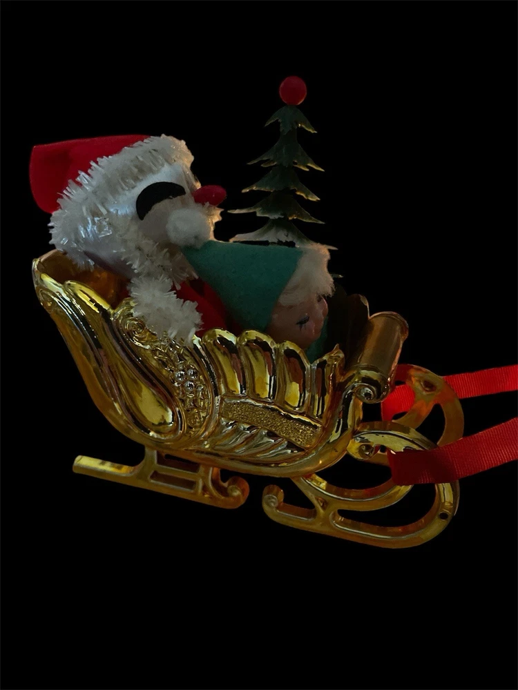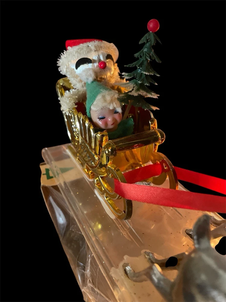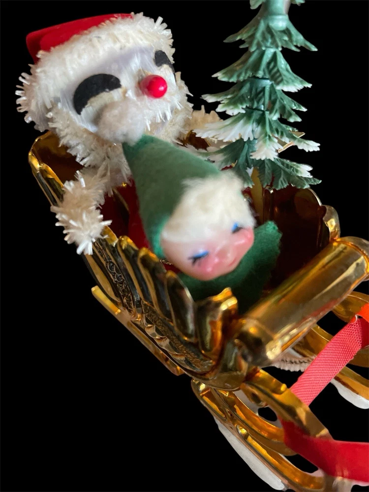 This very old Bradford figurine features an early depiction of Santa with his reindeer and elf. The highly detailed ornament is perfect for any collector or lover of Christmas decorations. The brand, Bradford, is known for their quality and this piece is no exception. The figurine is part of the Ornaments collection and is perfect for the holiday and seasonal display. It would make a great addition to any figurine collection and is sure to bring joy to all who see it. The box is in rough shape and has been taped. None of the characters have been broken,reglued,or repaired, however some of the glue at the base of them may have discolored over the years with a milky white appearance. The elf and tree are loose in the sleigh. If you have a low feedback rating, please message before making an offer to purchase.