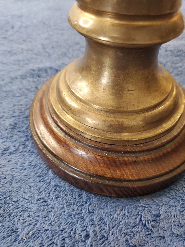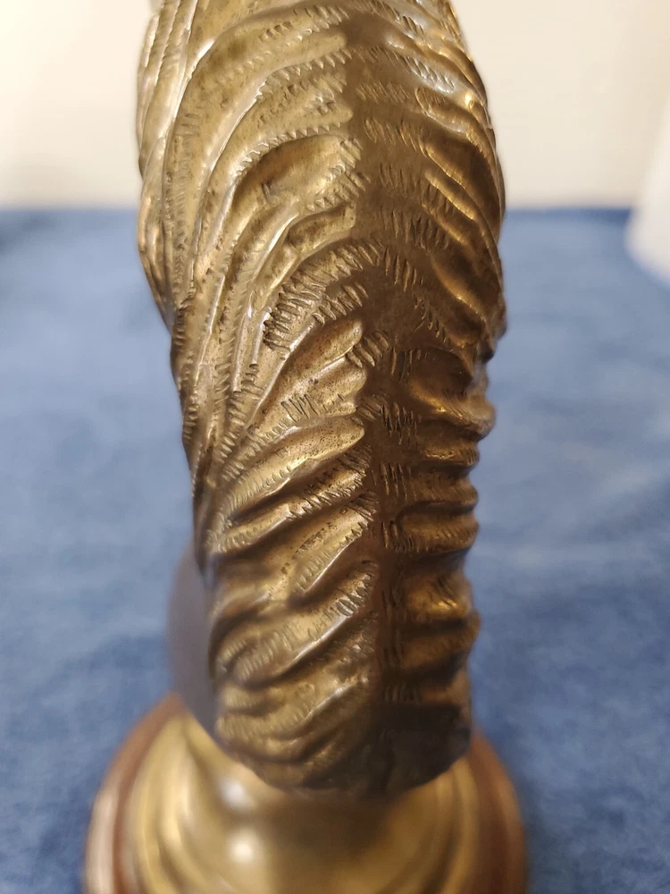 Vintage Bronze look Finish Horse Head Sculpture Bookend on Wooden base. 9 in tall with a 5" round wooden base. Very heavy and very old.