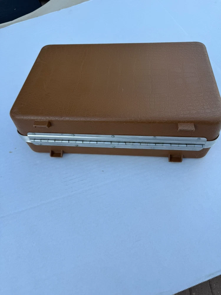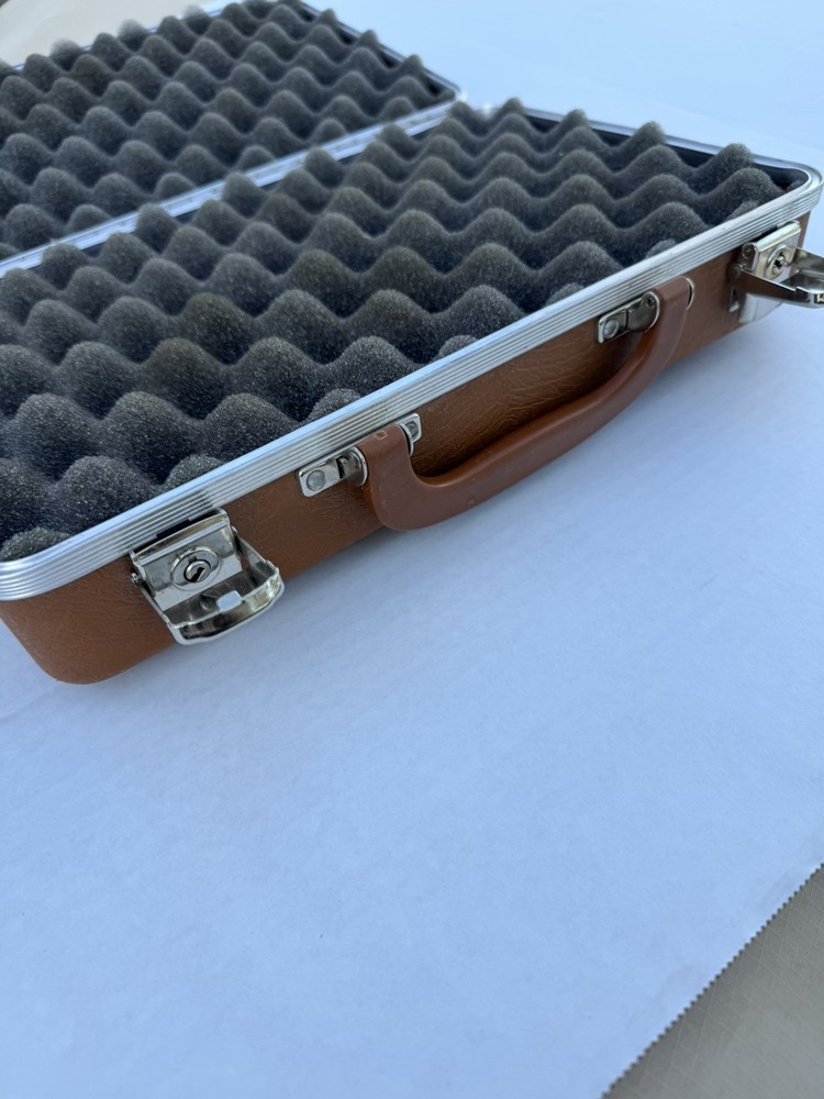 This vintage hard-shell case is a fantastic find! The faux-alligator leather gives it a classic, rugged look while the sturdy metal hinges and latches ensure durability. The egg-crate foam lining keeps your revolver or valuables snug and protected. Perfect for collectors or anyone who appreciates retro-style storage. Love the rich brown color—great condition for its age! Just be aware it doesn’t come with a key, but that’s a minor trade-off for such a cool piece. Highly recommend!