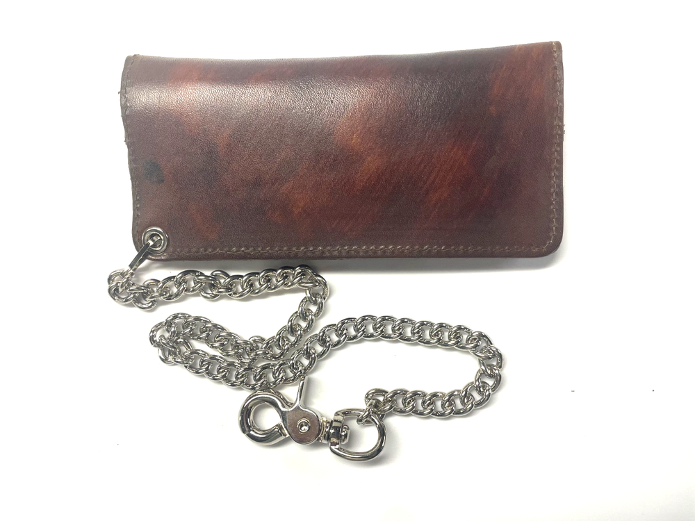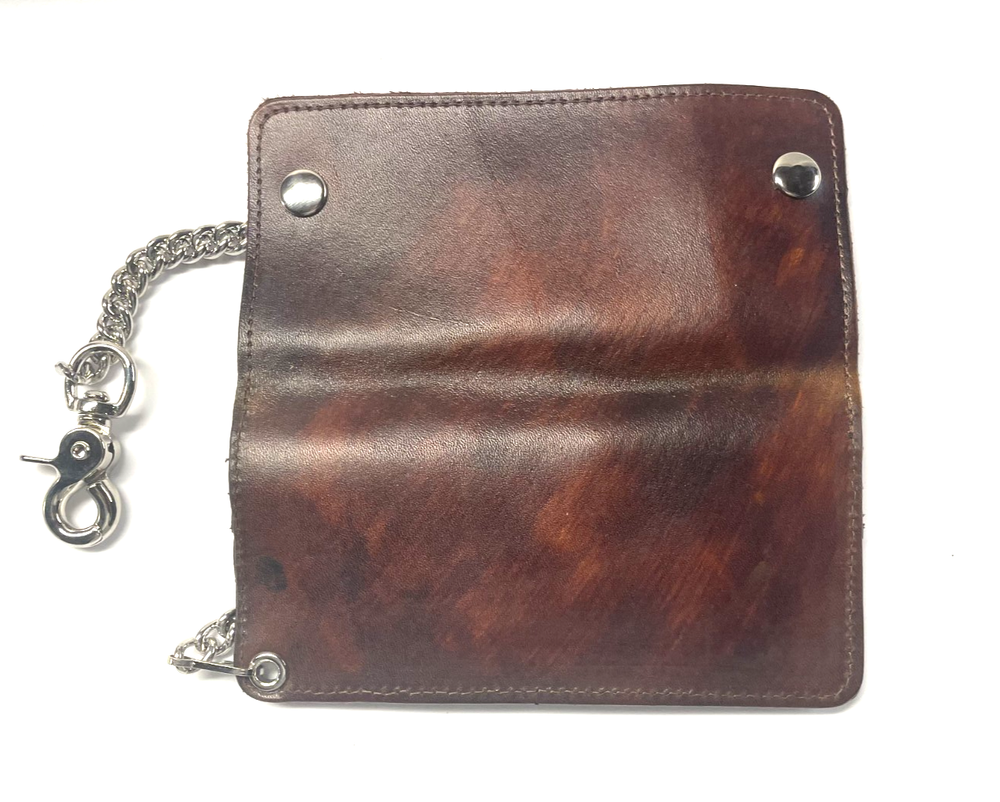This Wallet is Constructed "Antique" look Cowhide Leather - Made in USA Brand: Mascorro Style: Credit Card Biker Wallet with Chain Condition: Brand NEW Material: Genuine Leather Measurements: 7 1/4 inches by 3 1/4 inches closed and 7 1/4 inches X 7 inches when open Features: two heavy duty snaps to secure the contents It has an ID/ Credit Card Slot on the inside front panel 8 credit card slots Will hold bills without folding Inside currency pocket The chain is 18 inches long and has a sturdy metal belt clip Made in USA Welcome to Wallets Plus We specialize in providing our Customers with Brand New, Top Quality Wallets and Accessories at a Great Price . We Strive for Excellence and our #1 Goal is to make our Customer's Happy! Please Check our Feedback . We have sold thousands of Items on EBay and we are here to take care of you. If you have any questions or concerns please contact us first. Please be sure to check out my EBay store (Wallets Plus) frequently for more high quality Wallets and special one of a kind deals.