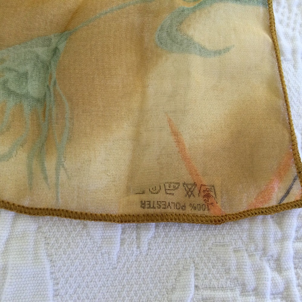 This vintage scarf is absolutely stunning—the brown chiffon with floral abstract print is elegant and lightweight, perfect for adding a touch of class to any outfit. Gently preowned but looks brand new, no stains or damage at all! The material is soft, drapes beautifully, and feels luxurious. Ships fast from a clean, pet-free home. Great deal for such a unique, high-quality piece—would definitely recommend!