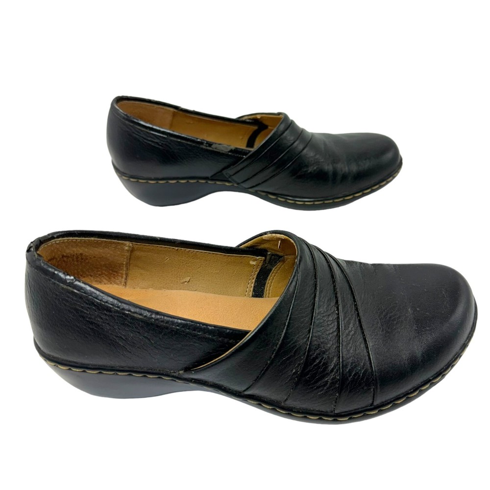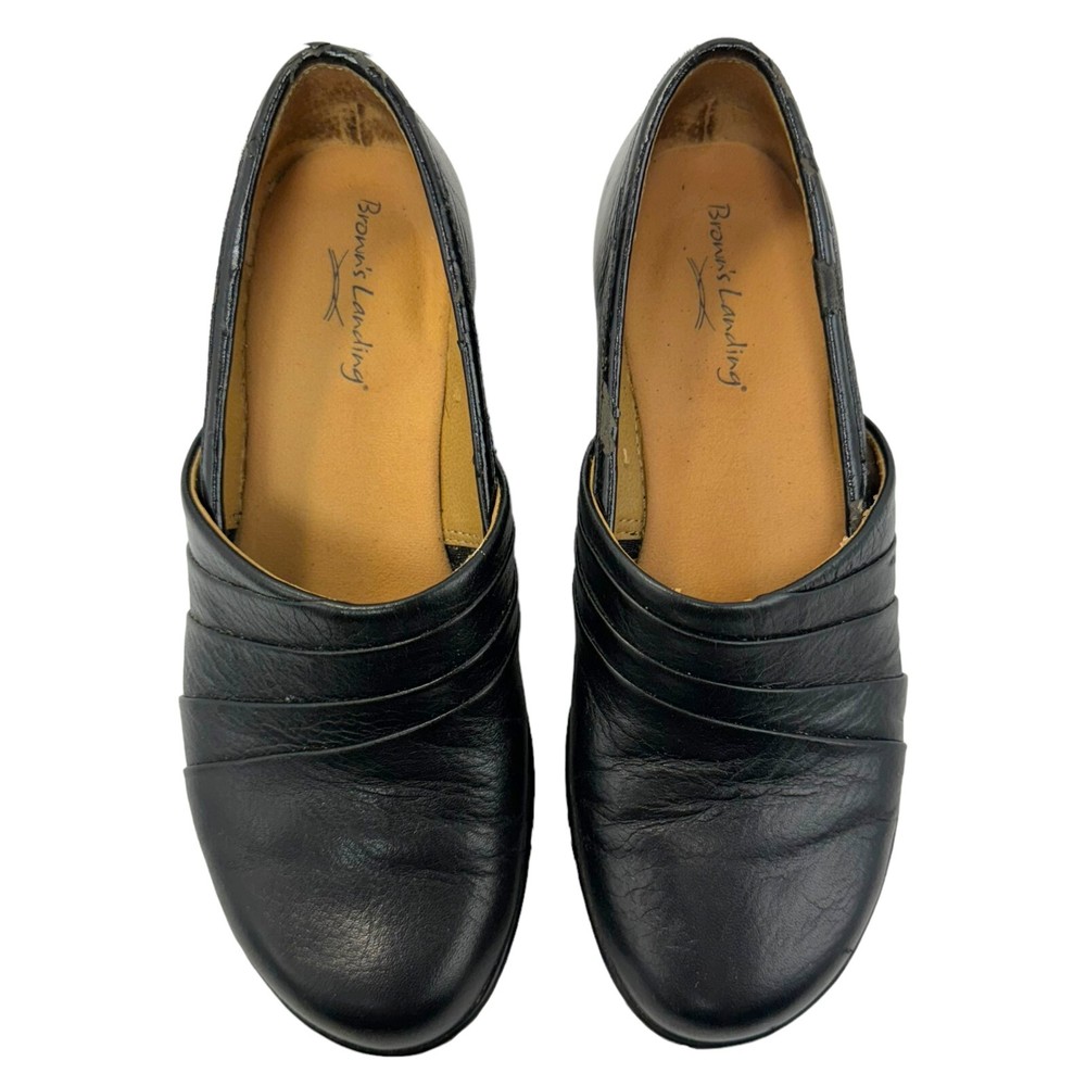 Item For Sale: Vintage Brown's Landing Maria Leather Clog Style Slip On Loafers Size 6.5M Black leather upper, man made sole 2" wedge heel Pleated accents Contrast topstitching Slip on style Style #: FL312-25 Item Condition: Good preowned condition. There is some flaking on the rim of the leather, shown in detail in the last 2 pictures. Structurally, these shoes are in very good condition, and there are no other flaws. Shipping Information: Purchases are shipped the next business day after full payment is received, and on occasion an item purchased early in the day may end up shipping out that same day. The shipping service used will depend on the specific weight and dimensions of the item, but the most commonly utilized services are USPS First Class, USPS Ground Advantage, or USPS Priority Mail. If this is a book purchase, USPS Media Mail is used. Free returns are accepted for any reason within 60 days of purchase. The return shipping is free to the buyer. Once the returned item has been received, you'll be issued a refund for the original item cost (not including the original shipping cost). Store Information: Thank you for supporting my small business! Providing affordable, quality products and top-notch customer service is my top priority. If you have any concerns about an item you receive, please don't hesitate to reach out. I'm always happy to address any concern you may have.