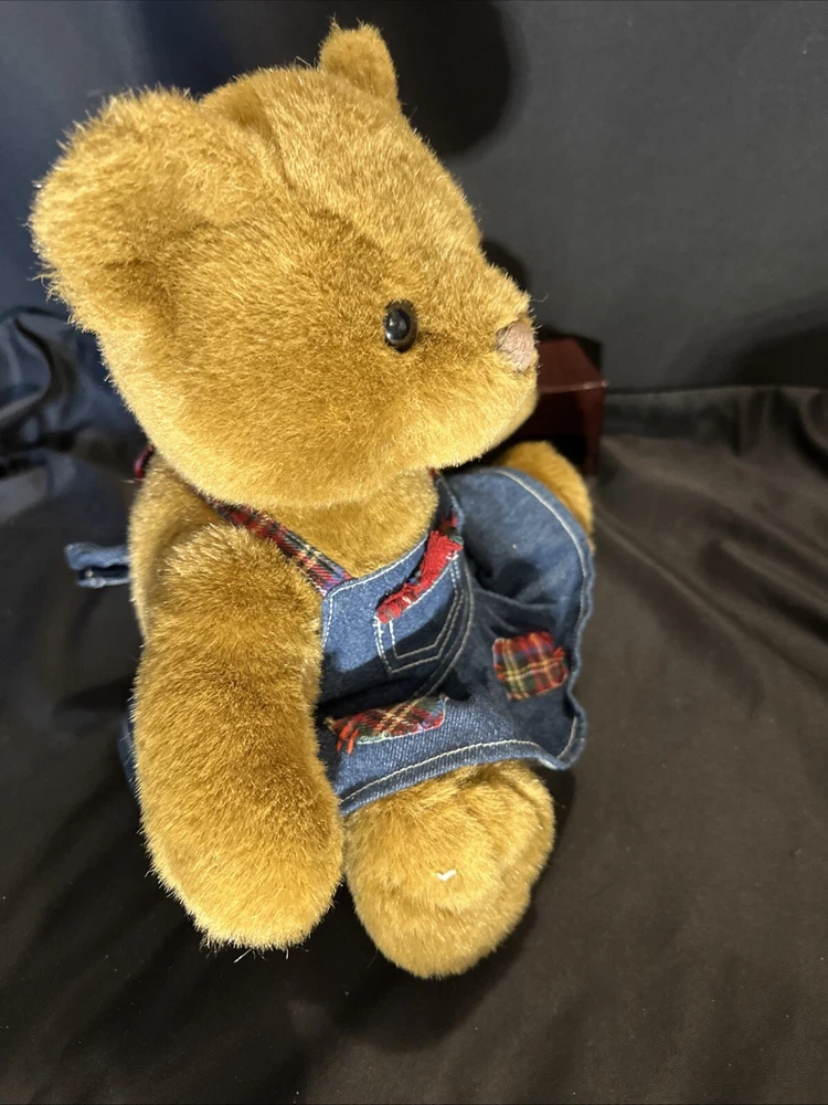This vintage Build-A-Bear Workshop plush bear is a must-have for any collector or fan of the popular franchise. Measuring at 11-12 inches in height and made of soft, plush material, this bear is perfect for all occasions. It features a denim jumper, brown eye color, and a friendly expression that will melt anyone's heart. This licensed reproduction bear was manufactured in the United States in 1997, making it a true gem from the 1990s. It is a single unit, and unfortunately, it is not signed. But don't let that stop you from adding it to your collection! This rare and retired bear is perfect for display or cuddling.