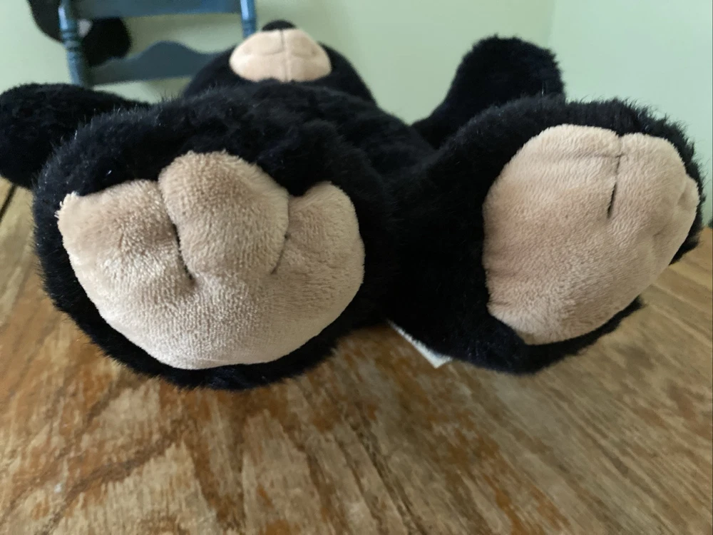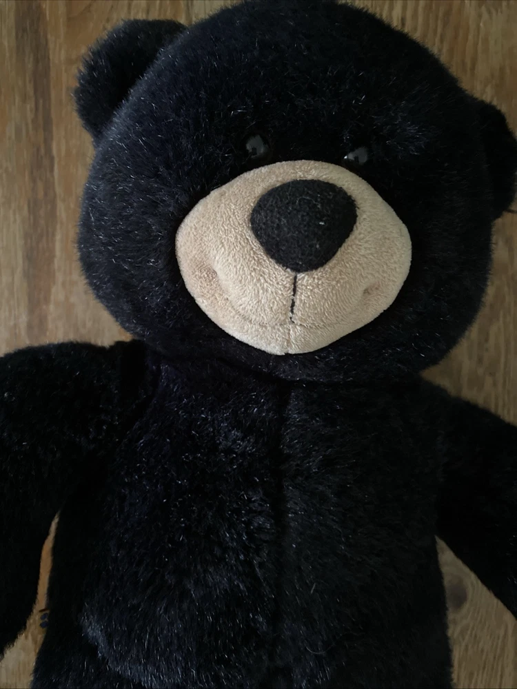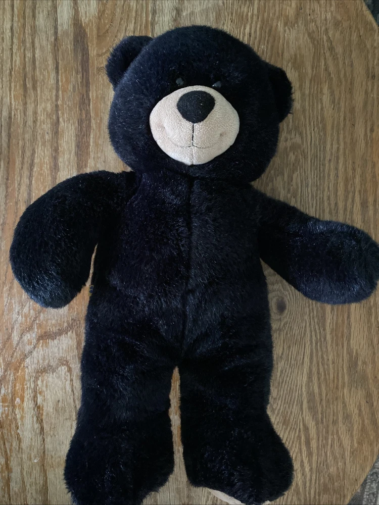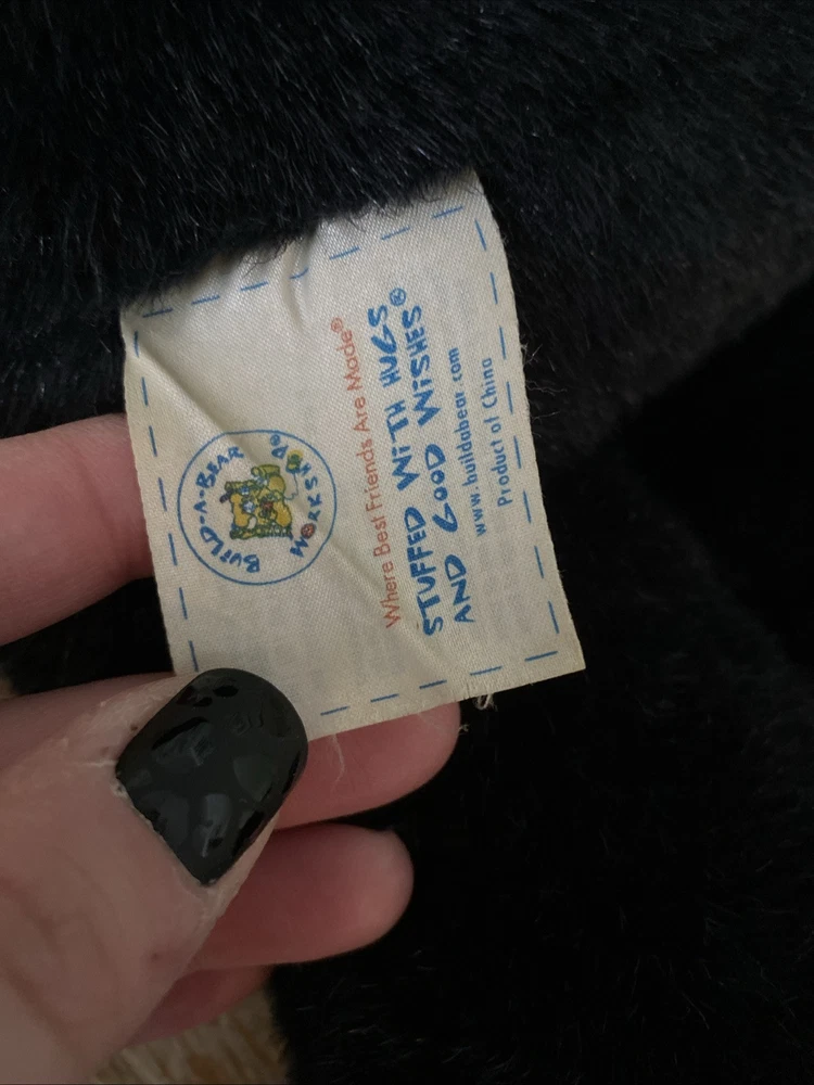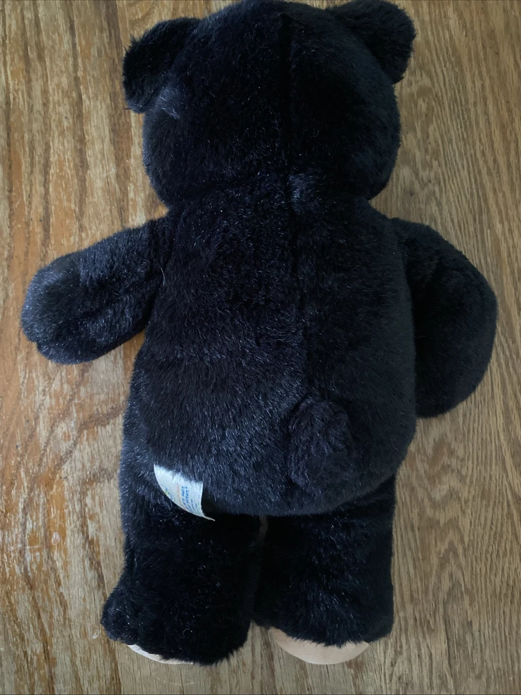 This vintage Build-A-Bear Workshop plush bear is a must-have for any collector or lover of stuffed animals. With its charming black and tan fur and adorable dimples, this 16-inch teddy bear is perfect for all occasions. It's made of high-quality plush material and has been well-maintained over the years, although it is a bit worn and has some signs of use. The bear's eye color is black, and it features the iconic Build-A-Bear Workshop branding on its paw. This retired BABW stuffed toy is a great addition to any collection or a thoughtful gift for a friend.