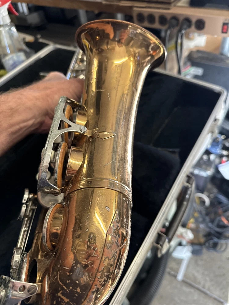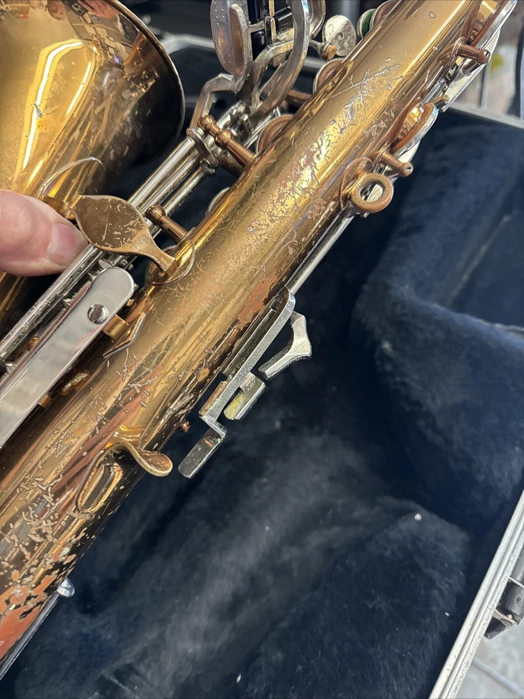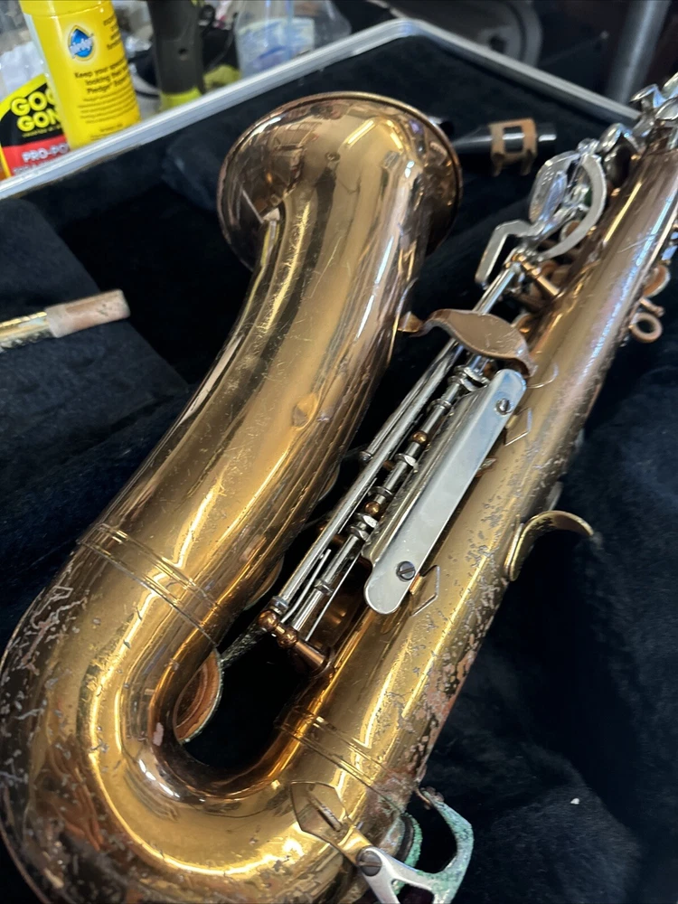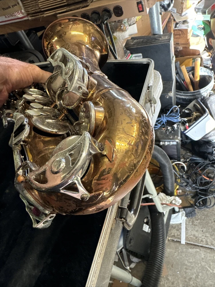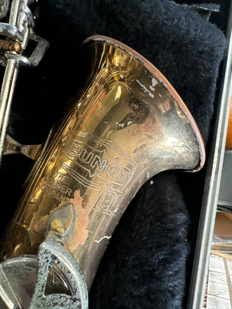 Comes as seen includes original case good solid shape but will need cleaning and new pads Red Brass finish has some small dents and dings and wear no missing or broken keys see all pictures for condition includes neck and original Bundy mouthpiece