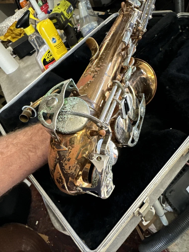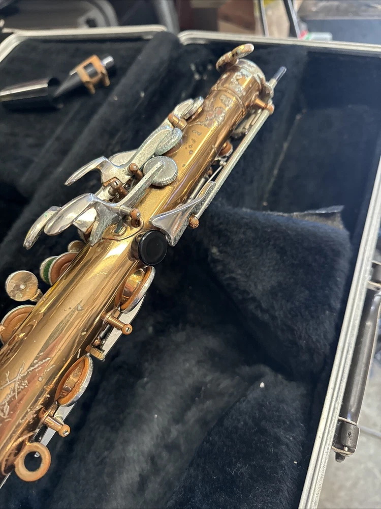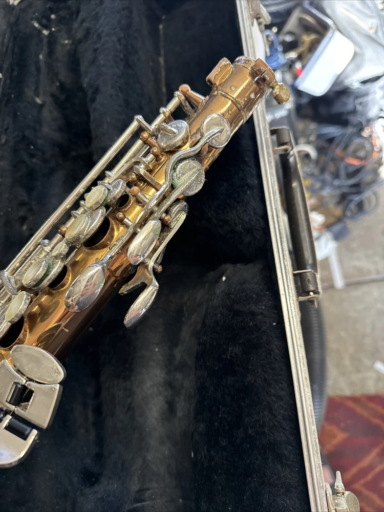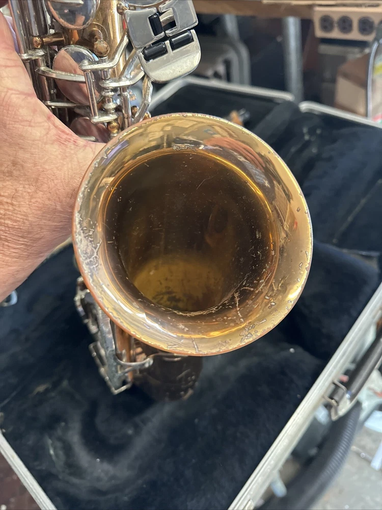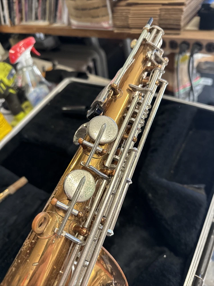 Comes as seen includes original case good solid shape but will need cleaning and new pads Red Brass finish has some small dents and dings and wear no missing or broken keys see all pictures for condition includes neck and original Bundy mouthpiece
