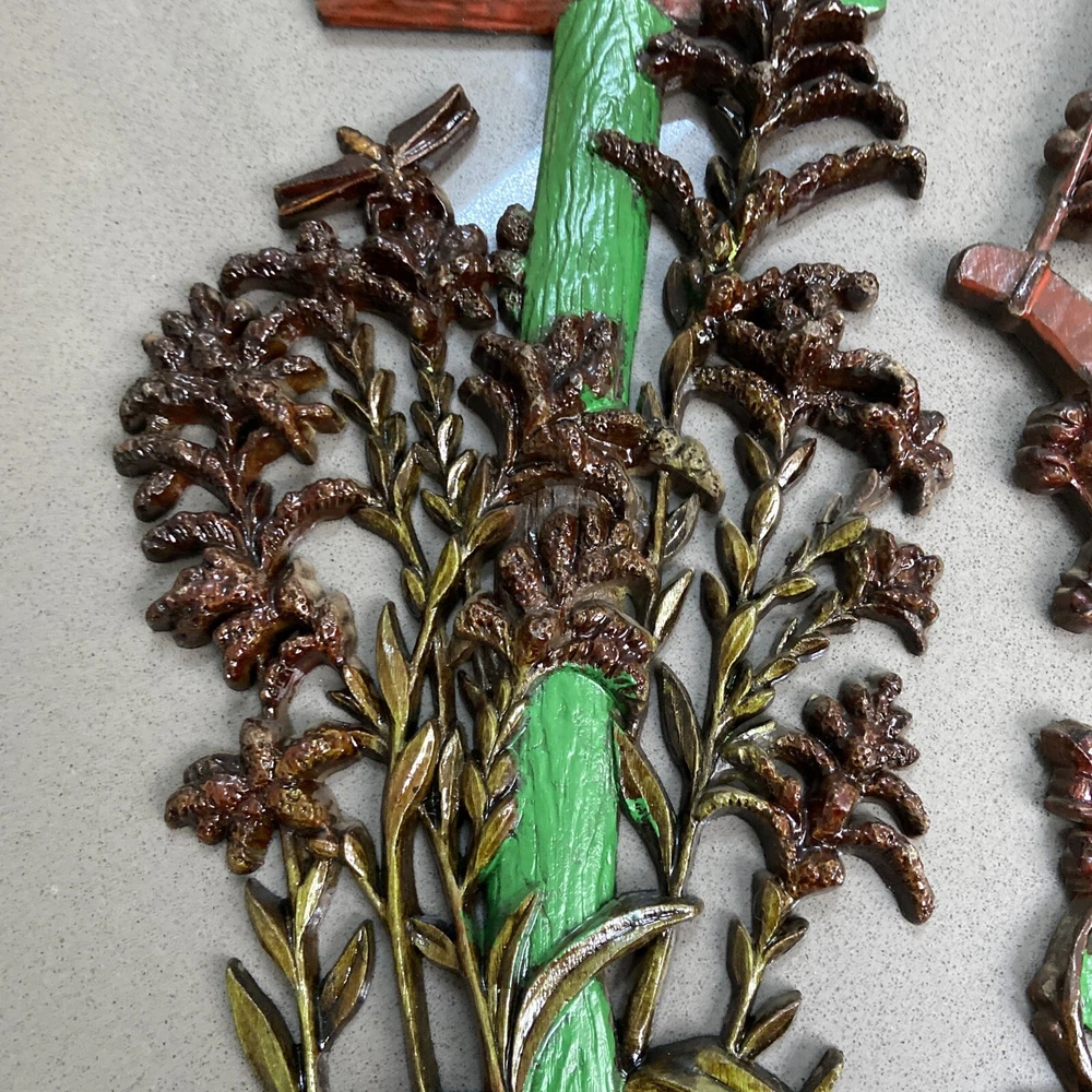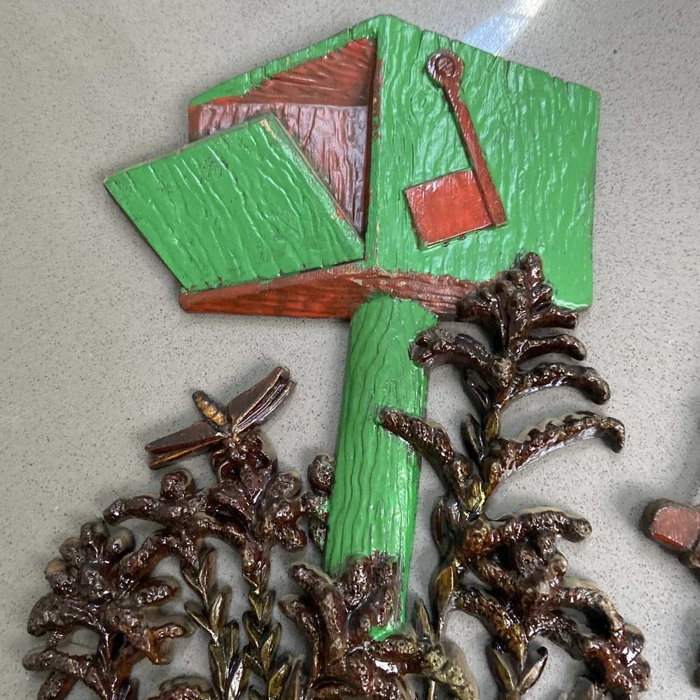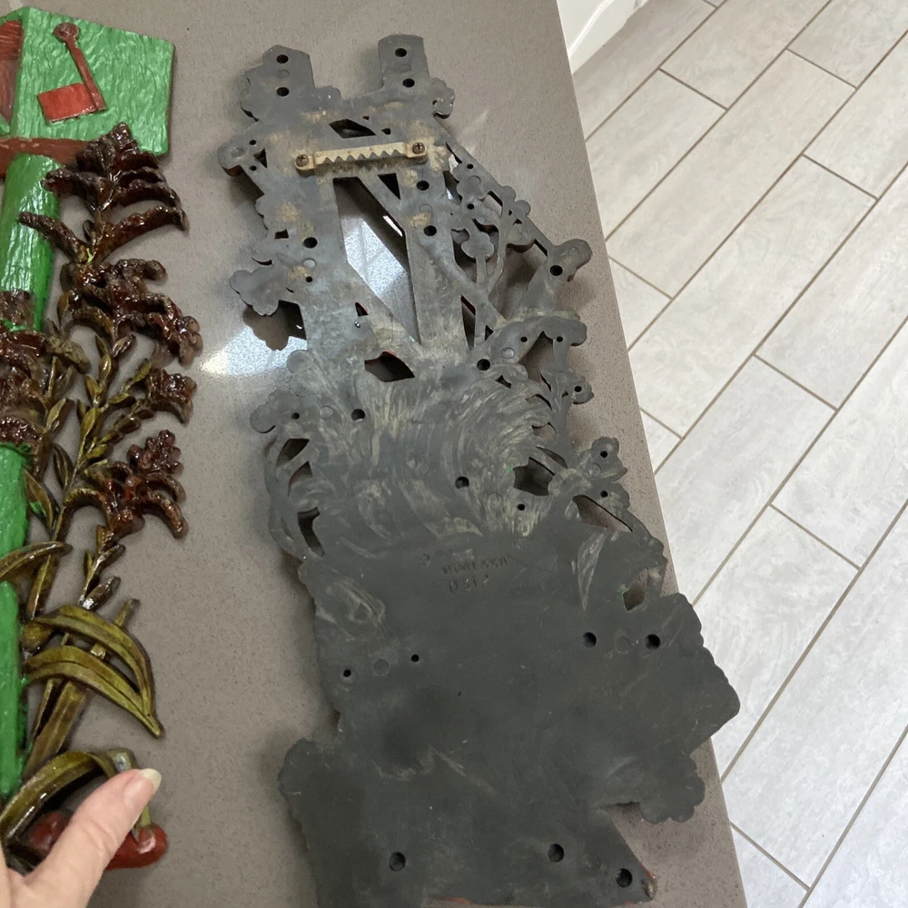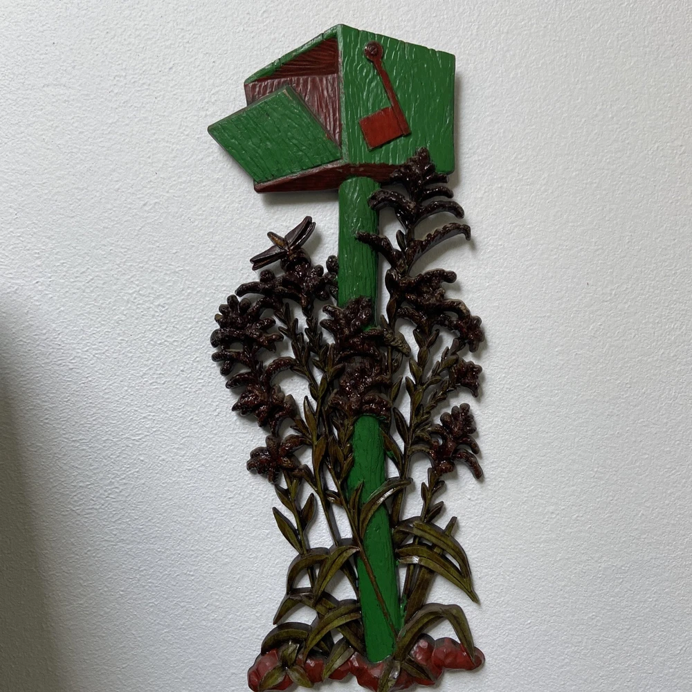 Two very interesting pieces by Burwood one is a mailbox and the other may be a well or a fence? I’m not really sure. they are in the grass green color with brick red & brown color details. Each piece is 18 inches tall and approximately 7 inches wide