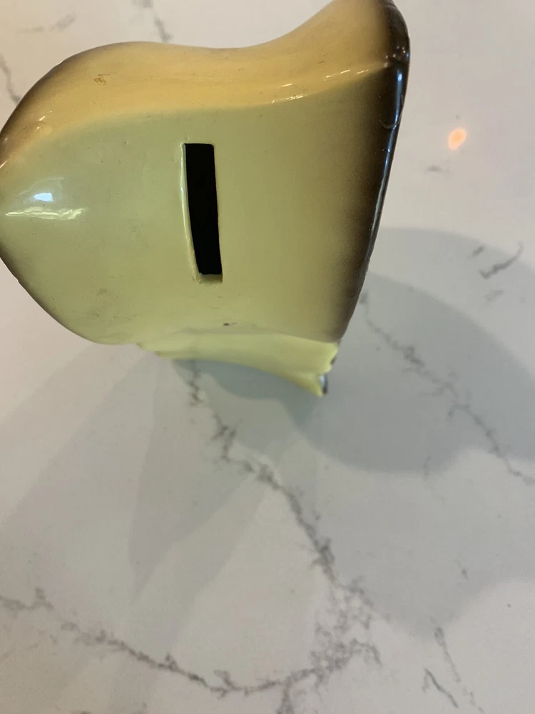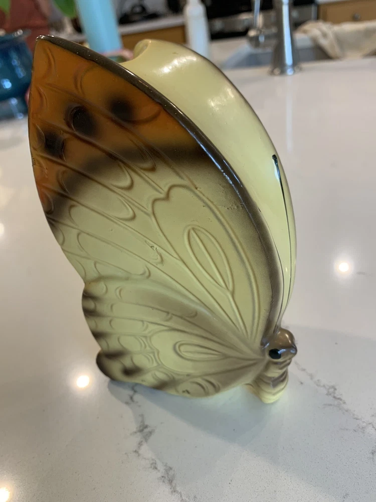 Vintage Butterfly Coin Bank Japan Butterfly Monarch Glazed Pottery 50s 60s