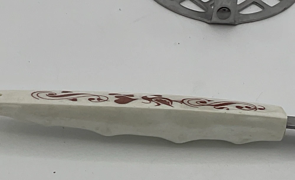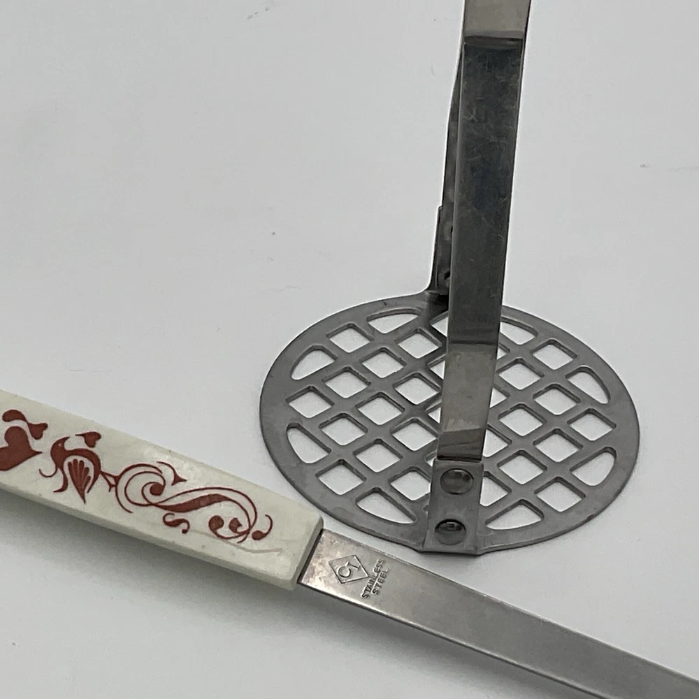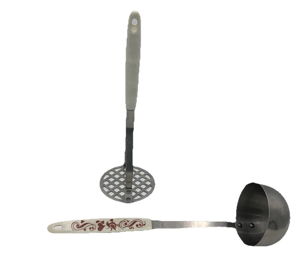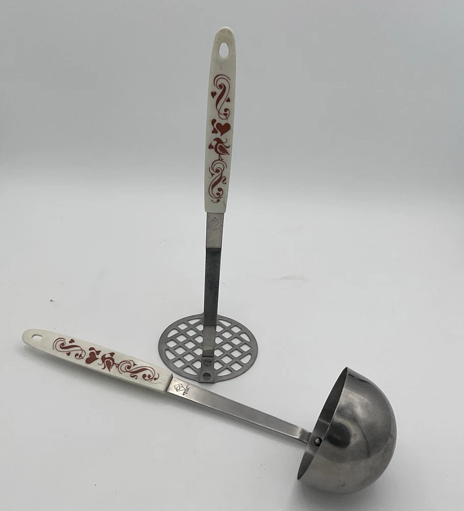 HomeVintage CI Ladle And Masher Utensil Set Japan Plastic Handles Birds Hearts