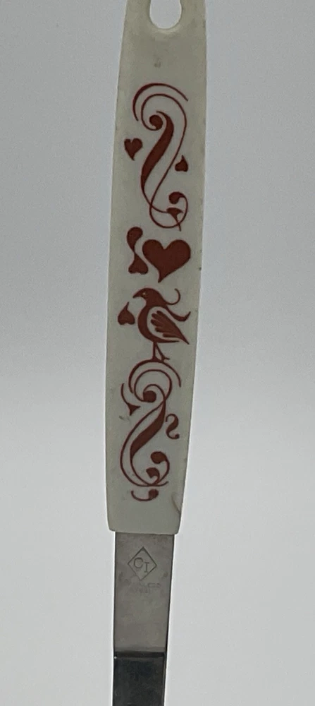 Vintage CI Ladle And Masher Utensil Set Japan Plastic Handles Birds Hearts