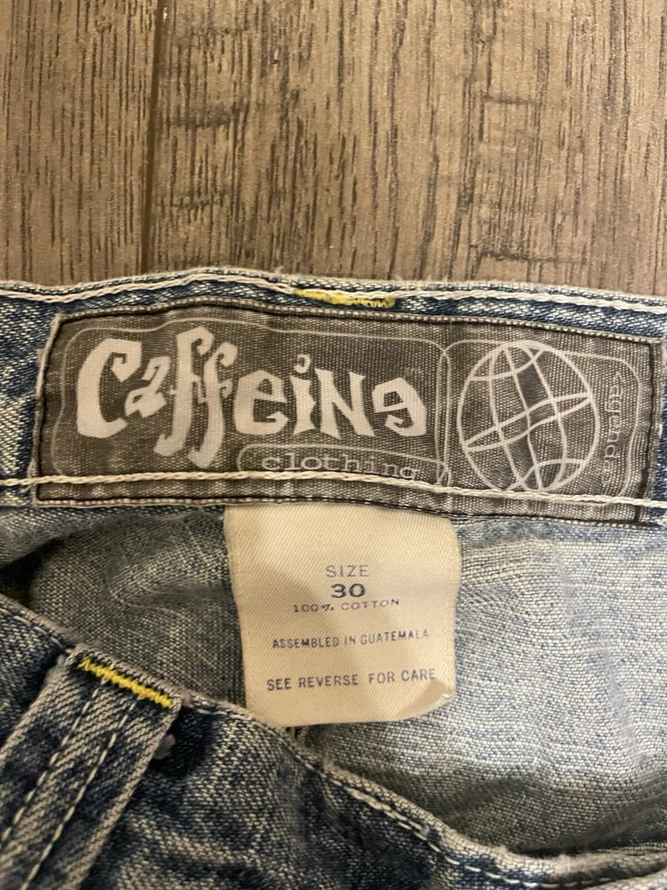 Vintage Caffeine Baggy Blue Jeans Size 30 Wide Leg 90s Rave Skate Grunge Hip Hop. Condition is Pre-owned. Shipped with USPS Ground Advantage.