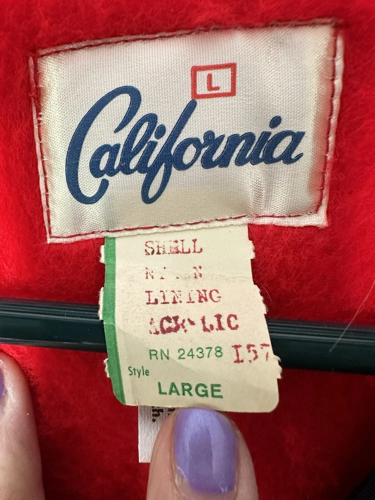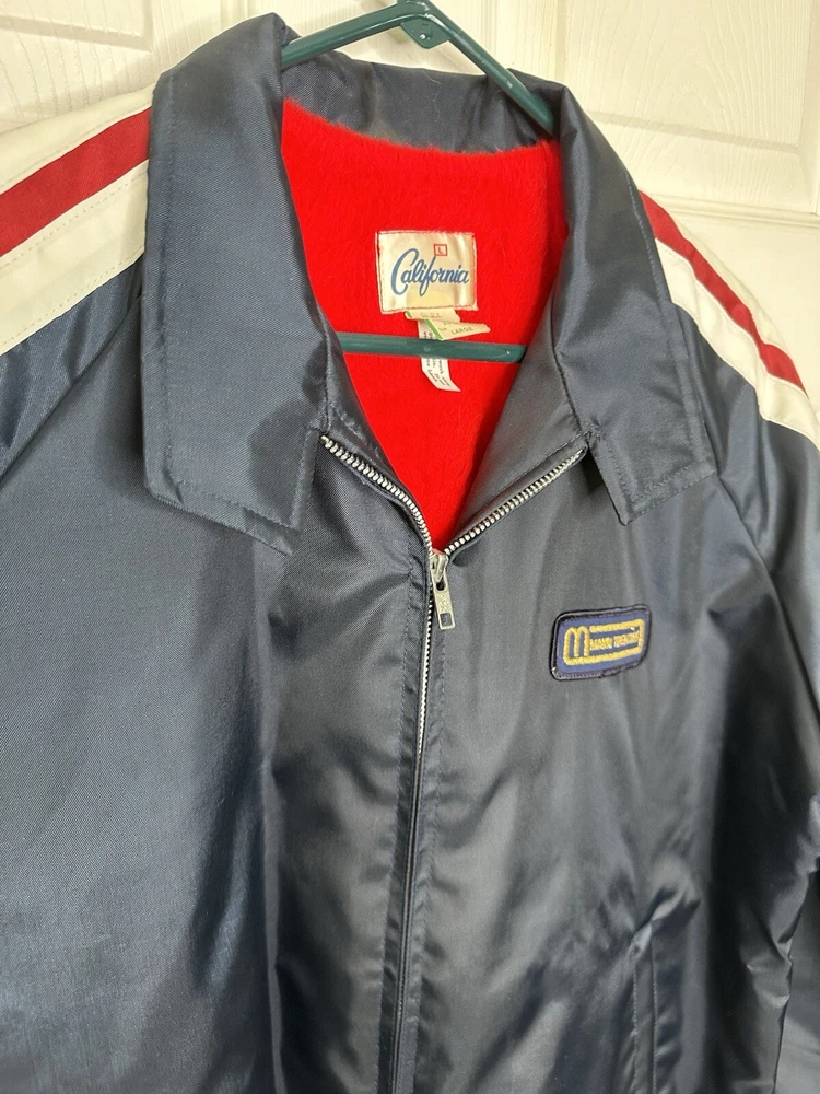 Vintage Men’s Calderon Of California Manns Theater Customer Service Jacket VERY RARE EXCELLENT LIKE NEW CONDITION- There is a little dirt smudge on one of the shoulders. See last picture. Otherwise looks like it was never worn. Size LARGE CHEST- 25” Shoulder to bottom- 27”