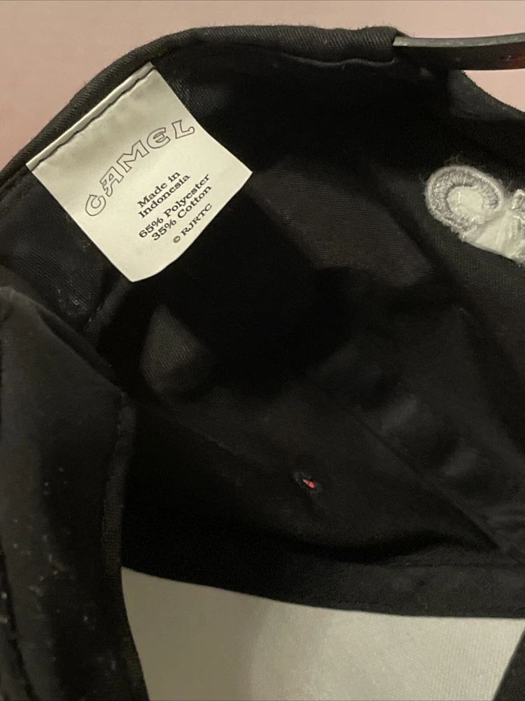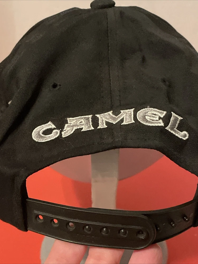 P-15 This vintage Camel cigarette black advertising snapback hat cap is a stylish addition to any casual outfit. Made of cotton, this one size fits all cap features a snapback adjustment type for a comfortable fit. The 1990s era cap has a trucker look and is an original piece with the Camel brand logo prominently displayed. The hat is perfect for collectors of vintage accessories and is a great addition to any collection. It was made in Bangladesh and has a fur type of x. The cap also has a few features that make it stand out, but they are not too noticeable. This item is a must-have for anyone who wants to add a touch of vintage style to their wardrobe. Please ask questions before bidding and please look at pictures Thank you and have a great day