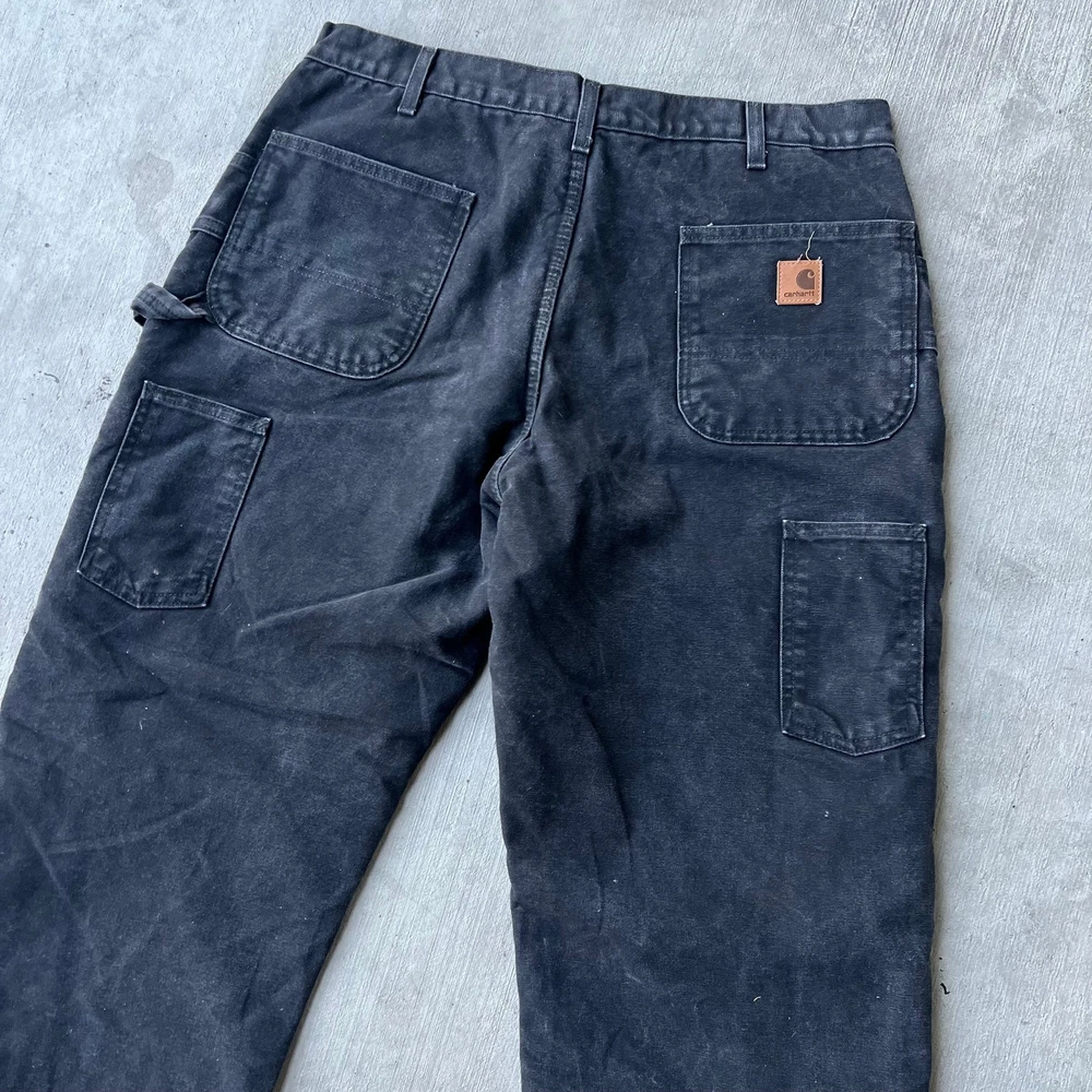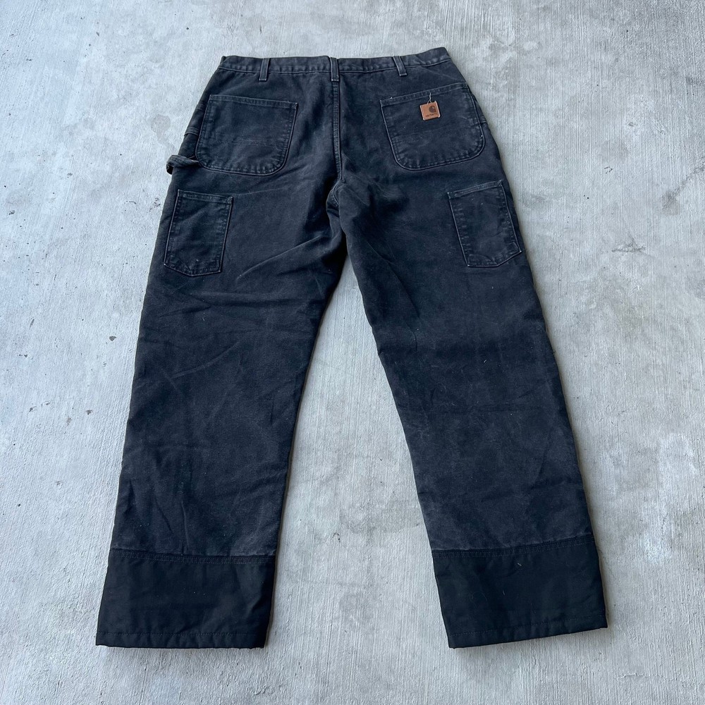 Vintage carhartt y2k insulated black double knee work wear carpenter pants. Great pair! Zipper down the sides. Measures 35x31 and a 10.25 leg opening. Please check measurements before purchasing. I do my best to show any flaws in pictures. Quick shipping! Bundles encouraged! @ants_haul on Instagram. 0766!!!