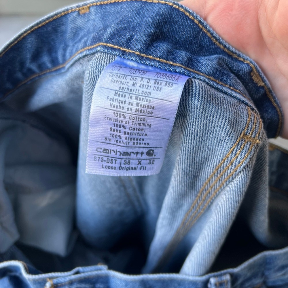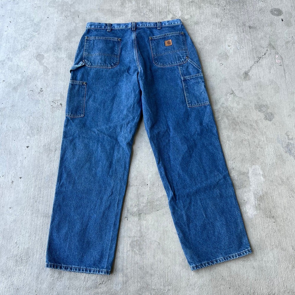 Vintage carhartt blue denim jeans y2k double knee work wear carpenter pants. Great pair. Measure 38x32 and a 9.75 leg opening. Please check measurements before purchasing. I do my best to show any flaws in pictures. Quick shipping! Bundles encouraged! @ants_haul on Instagram. 697!!!