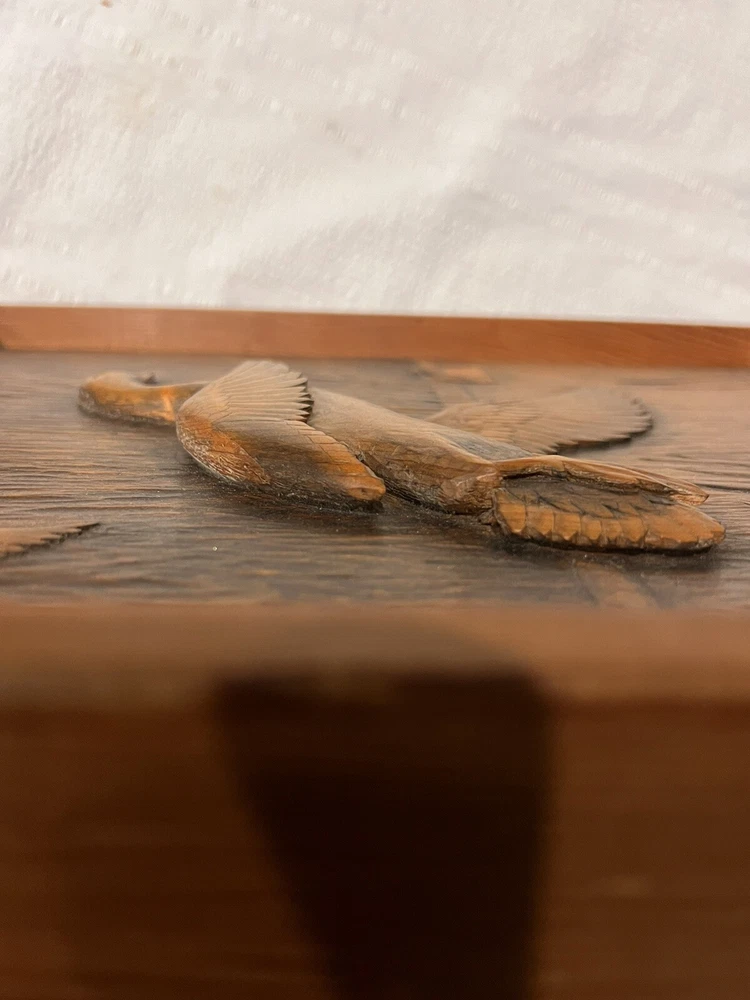Vintage Carved Wood Bird Wall Art MCM 12.5”x14.5” Signed