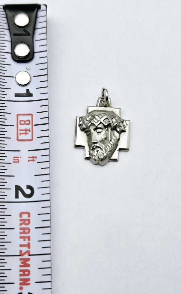 Vintage Catholic Chapel Sterling Silver Jesus 3D Cross Medallion Charm Pendant Weighs 3.5 grams