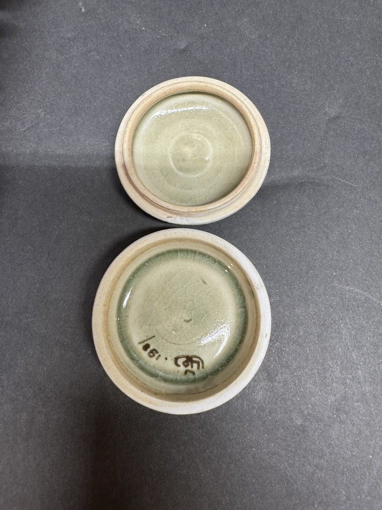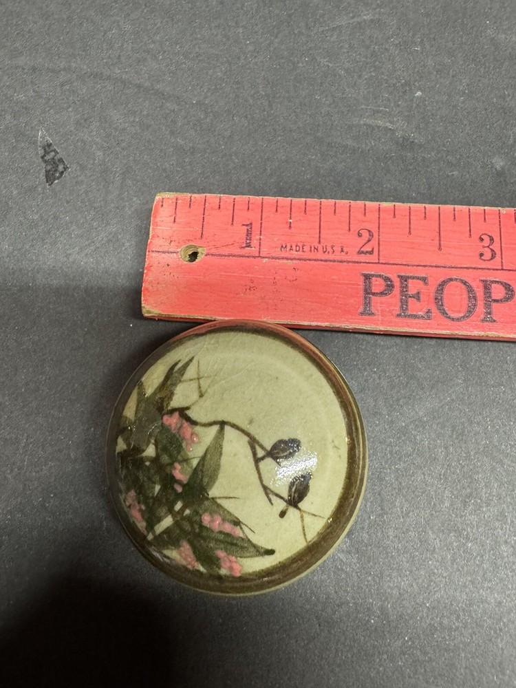 Ceramic Round Jewelry Ring Box with Bird and Flowers Design