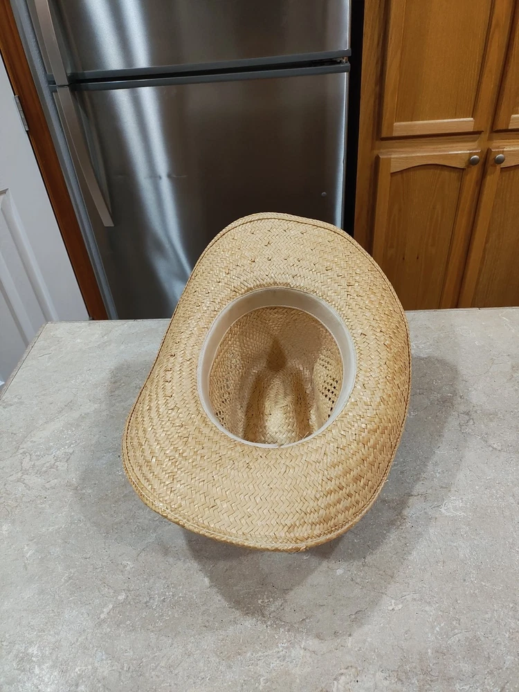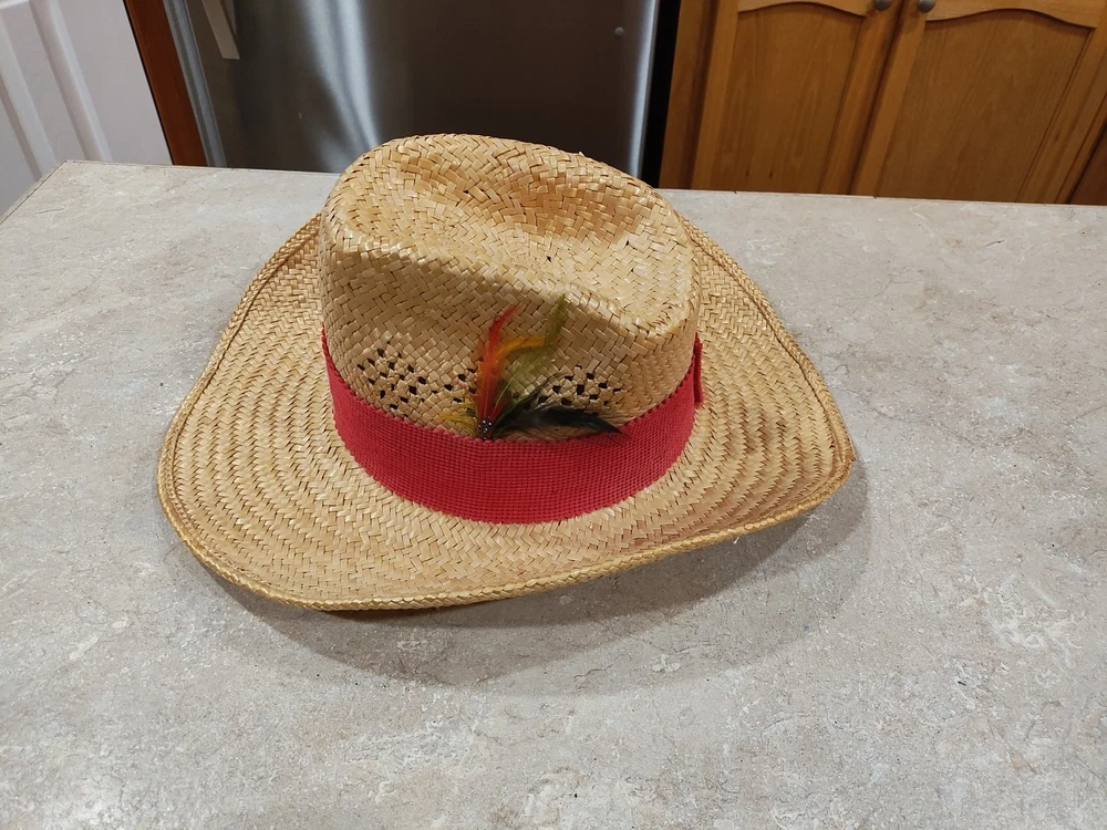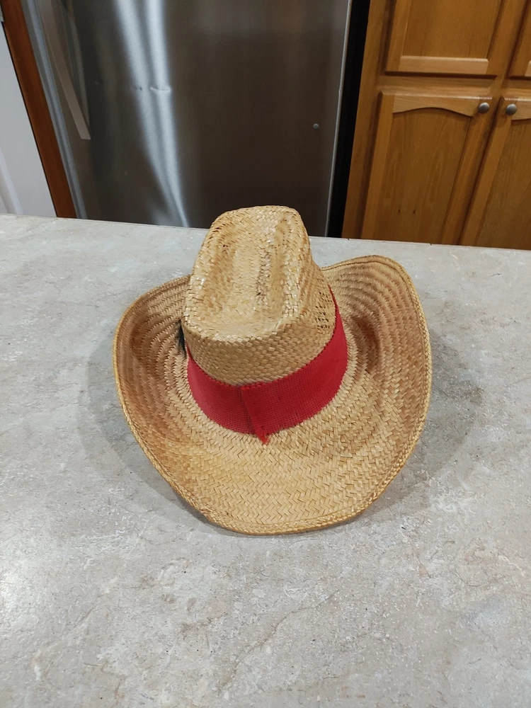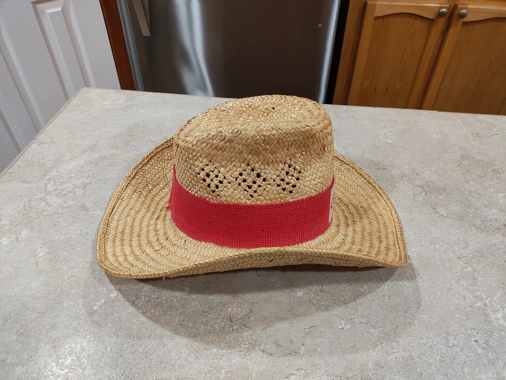 This is a vintage Cenex woven straw hat from the 1990s, featuring a Cowboy Country Western style. The hat is perfect for a Country Farm Ranch look. It is an original piece made of straw, ideal for those who appreciate discontinued items with a nostalgic feel. Mr