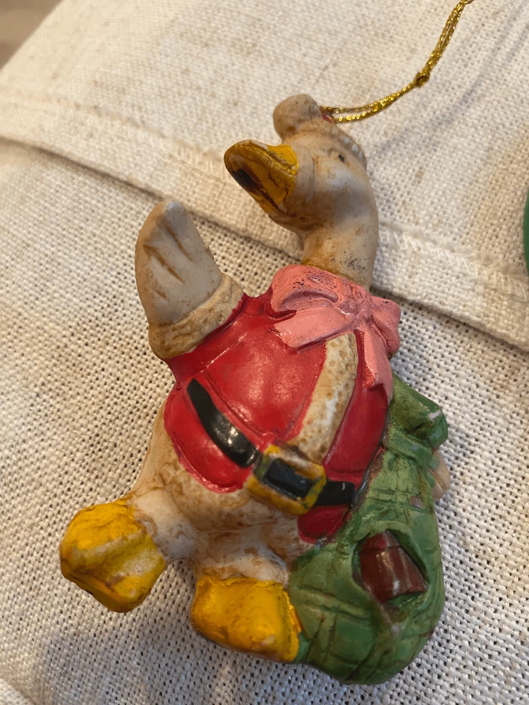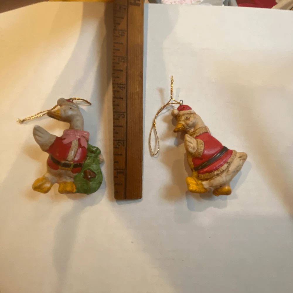 Vintage Ceramic Duck Santa Christmas Tree Ornament Set of 2 Rustic Xmas Decor 3.5” In excellent used condition Smoke free home Xmas, Christmas tree, gift, stocking stuffer, ornament, vintage, collectible, rustic, farmhouse, countrycore