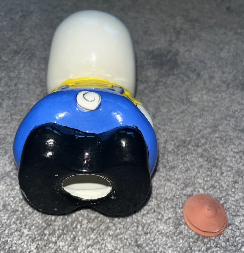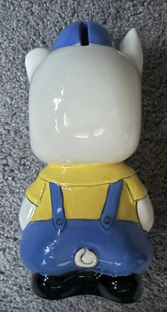 Vintage Ceramic Porky Pig Coin Piggy Bank Looney Tunes Rare 1950s W/ Stopper Plug Nice condition. Very slight wear. No cracks or chips. Only light typical usage wear to the bottom of the bank. See pictures. Unknown maker. Bank probably modeled after Porky Pig/The Three Little Pigs. There seems to be a few different color variations of this bank that were available. It is about 10 inches tall. USPS shipping.