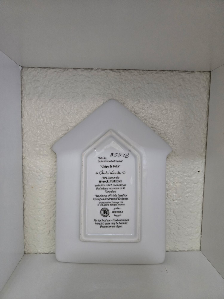 Charles Wysocki Plate "Chips & Felts", third issue in the Wysocki Folktown collection. Very charming and unobtrusive decoration, not for use with food. No returns