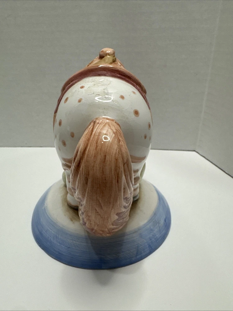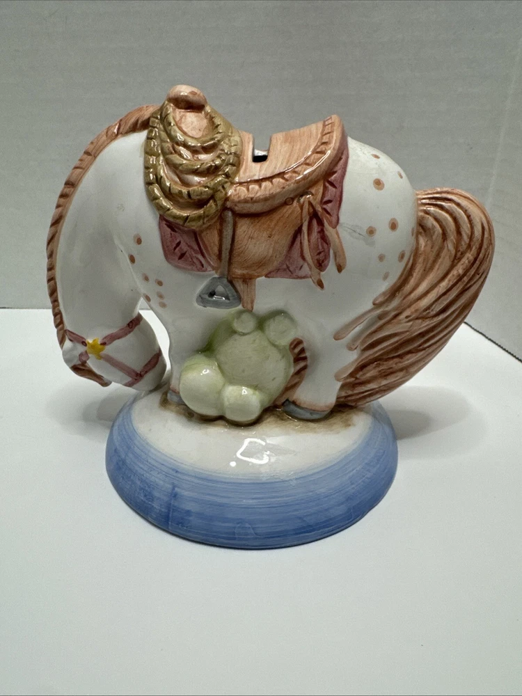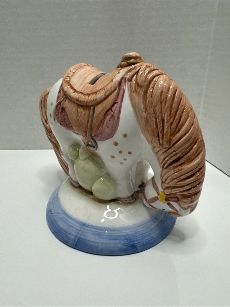This vintage Charpente horse ceramic coin bank is a must-have for any cowboy or animal lover. Crafted from high-quality ceramic, this original piece features intricate details and a unique design that is sure to impress. Made in Taiwan, this bank is in excellent condition and has never been modified. The bank measures [insert dimensions] and is perfect for storing coins and other small items. The Charpente brand is known for producing high-quality collectibles, and this bank is no exception. Whether you're a collector or simply looking for a charming addition to your home decor, this vintage Charpente horse ceramic coin bank is the perfect choice. 5.5” tall 6.5” long 4.5” wide